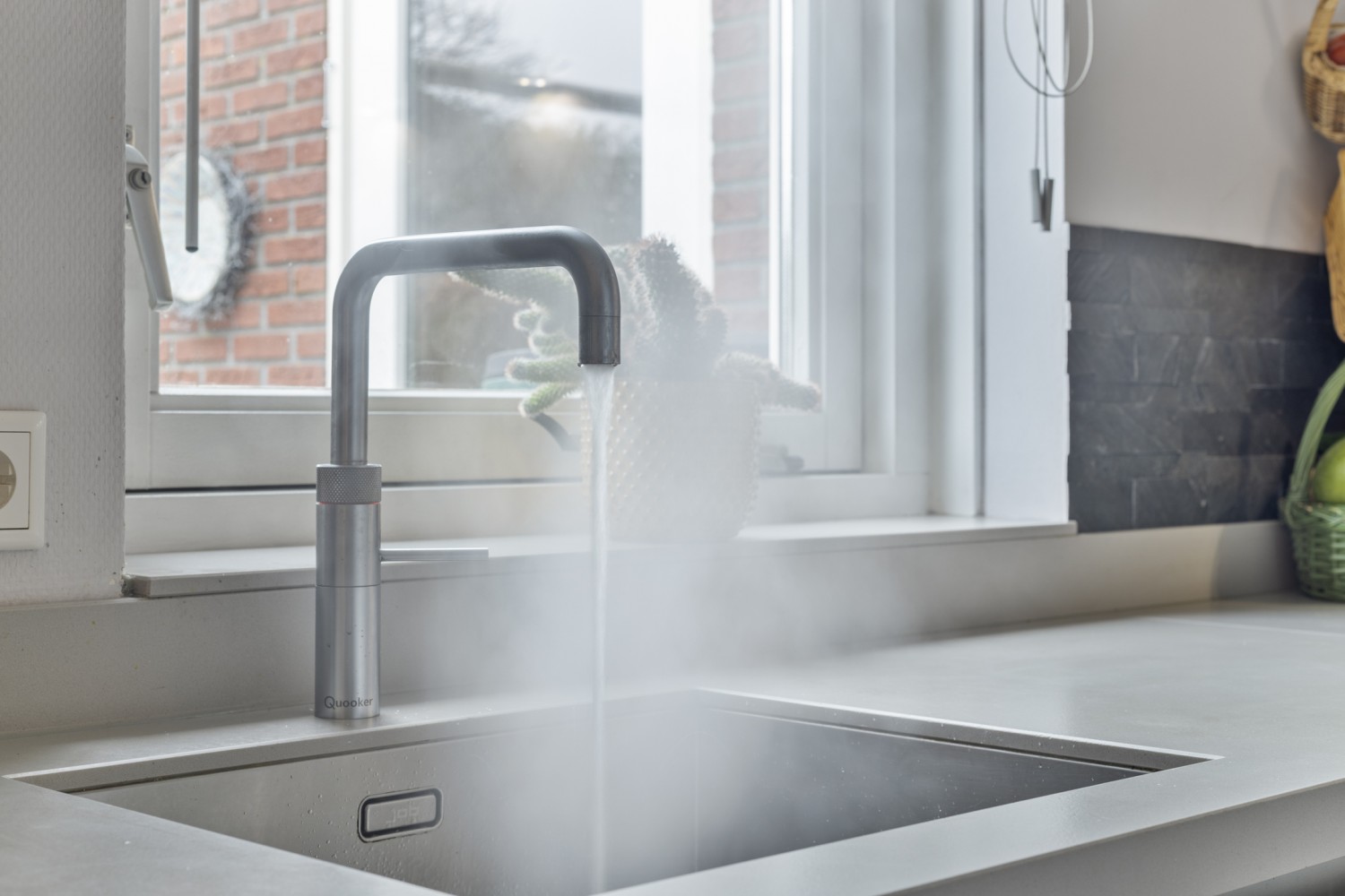 Aan de achterzijde bevindt zich de open keuken, die niet alleen praktisch is ingericht maar ook veel uitstraling heeft. Hier kun je met plezier koken en samen zijn met familie of vrienden. De keuken is voorzien van moderne inbouwapparatuur, waaronder een vaatwasser, combi-oven, inductiekookplaat, afzuigkap, koel-vriescombinatie en een handige Quooker. Alles binnen handbereik, ideaal voor wie houdt van koken, borrelen en tafelen in goed gezelschap.
