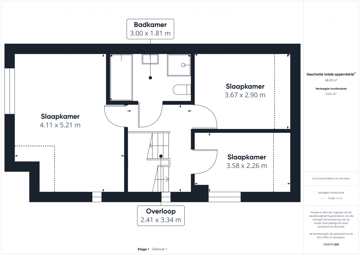 De overloop op de eerste verdieping geeft toegang tot drie royale slaapkamers, elk met een prettige indeling en veel lichtinval. De ouderslaapkamer aan de voorzijde voelt ruim en rustig aan, een heerlijke plek om de dag te beginnen of juist af te sluiten. De twee slaapkamers aan de achterzijde zijn eveneens goed bemeten en daardoor ideaal als kinderkamer, werkkamer of logeerkamer. Dankzij de neutrale afwerking kun je elke kamer moeiteloos naar eigen wens inrichten.