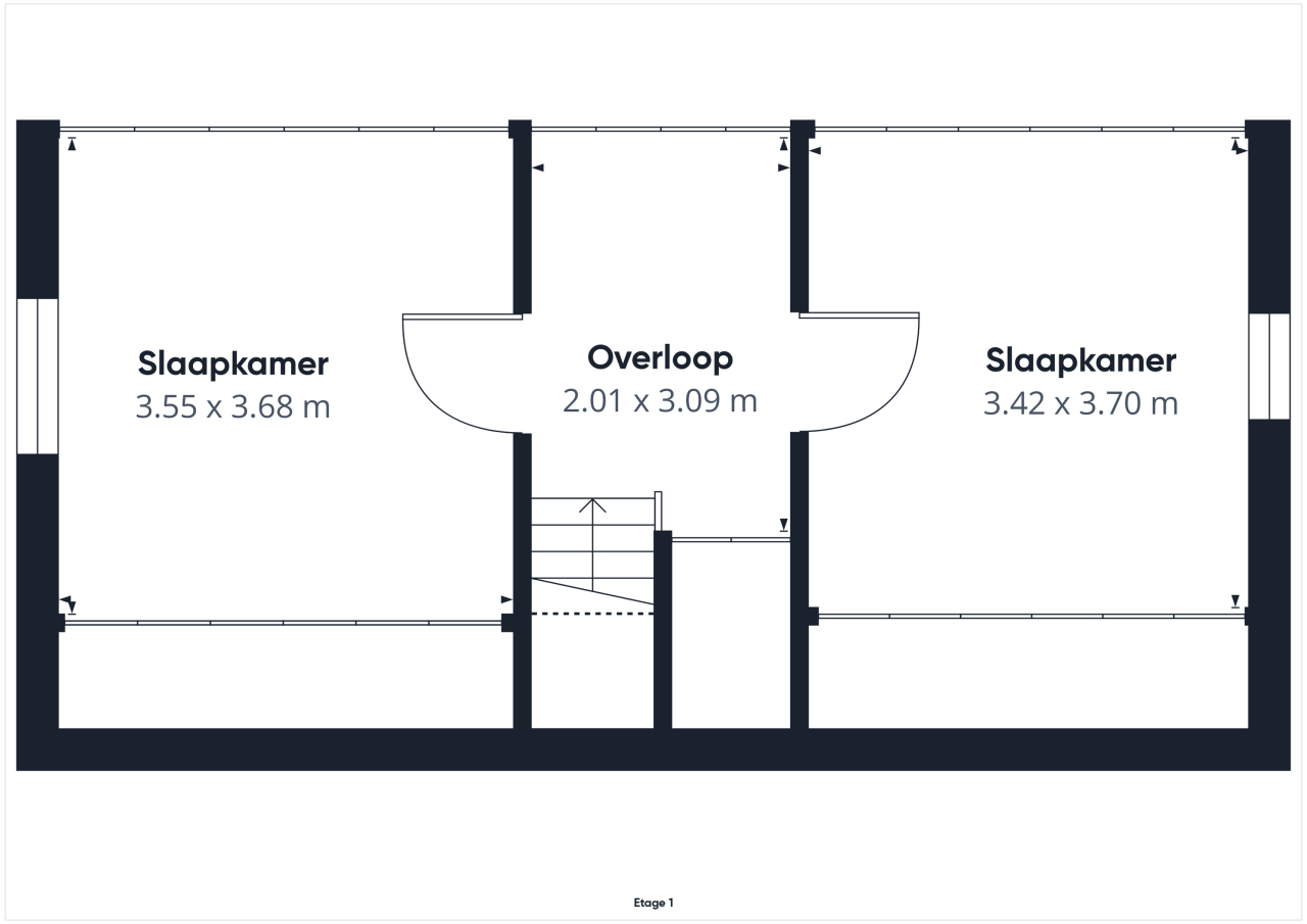 Op de eerste verdieping vind je een overloop met vaste kast en twee ruime slaapkamers, elk voorzien van vaste kasten. Zo is er voldoende opbergruimte en privacy voor iedereen. De indeling maakt de verdieping overzichtelijk en licht.