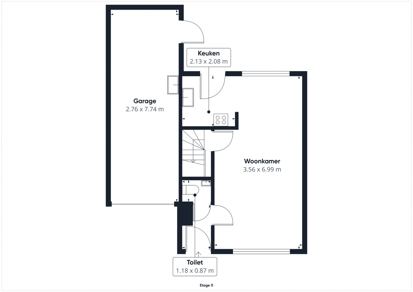 Binnenkomst is in de hal, waar zich de meterkast en het toilet met fonteintje bevinden. Vanuit de hal loop je de lichte doorzonwoonkamer binnen, die dankzij de grote ramen aan beide zijden geniet van veel natuurlijk licht. De trapopgang naar de eerste verdieping is vanuit de woonkamer bereikbaar. De open keuken in een lichte hoekopstelling sluit hier mooi op aan en is uitgerust met inbouwapparatuur. Vanuit de keuken is er directe toegang tot de achtertuin.