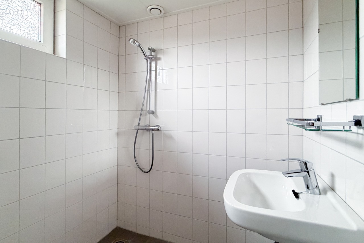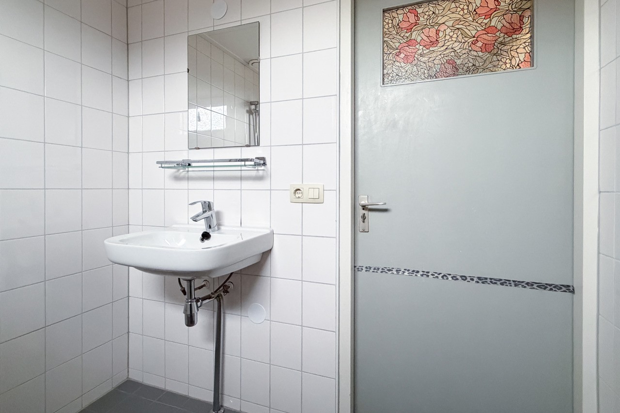 Hier vind je 3 slaapkamers en een badkamer met wastafel, douchehoek en een aansluiting voor de wasmachine.
