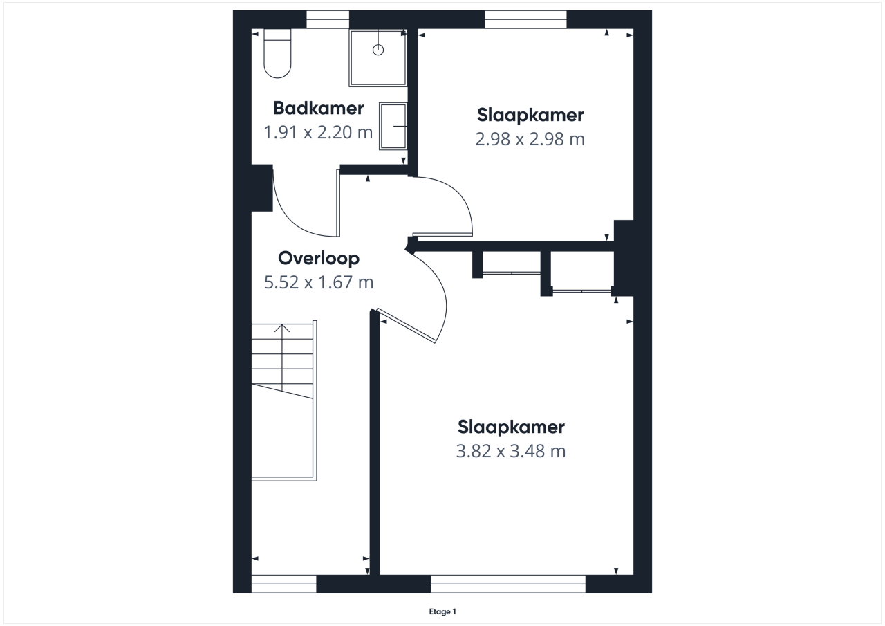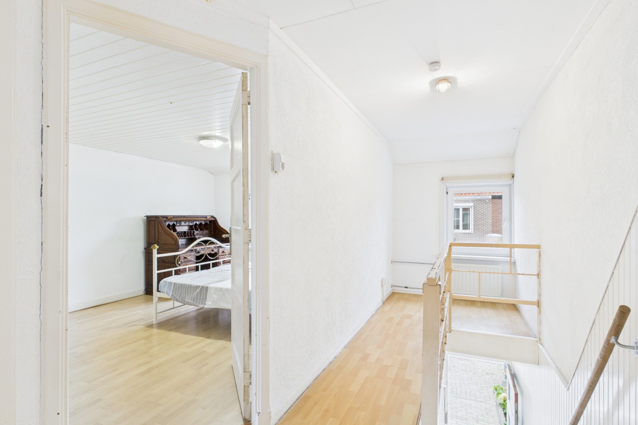 Op de eerste verdieping vind je twee slaapkamers, waarvan de ruime hoofdslaapkamer aan de voorzijde is voorzien van twee vaste kasten. De tweede kamer ligt aan de achterzijde en is ideaal als kinderkamer, werkruimte of kleedkamer. De badkamer is netjes en compleet ingericht met een douche, wastafelmeubel en toilet.