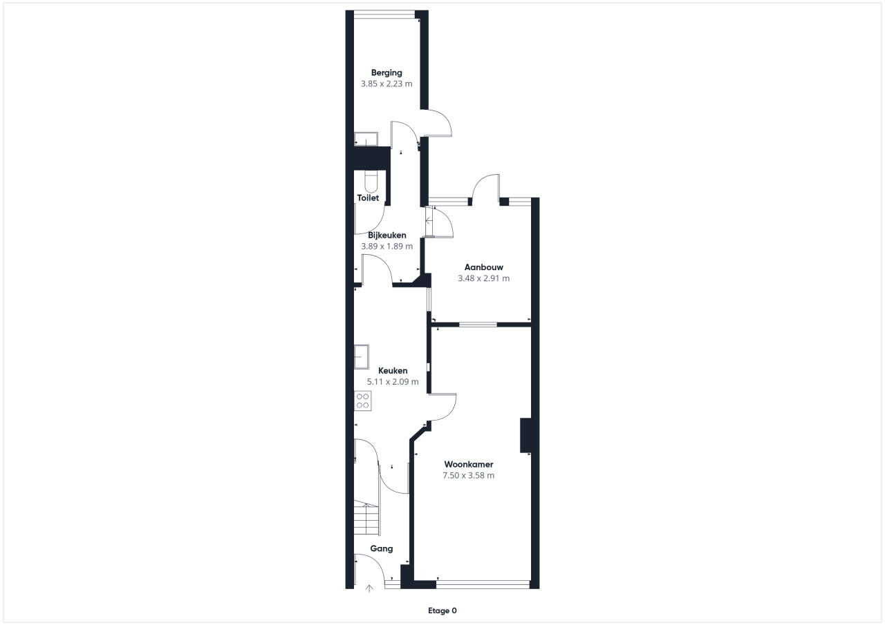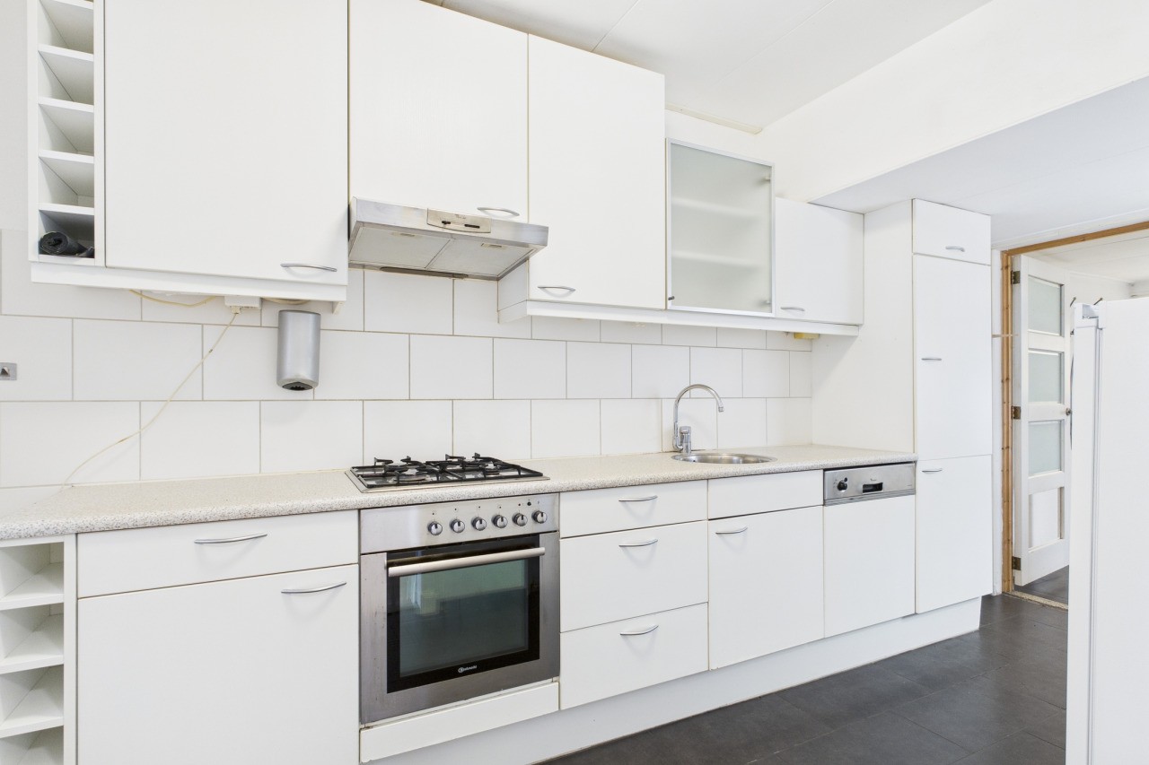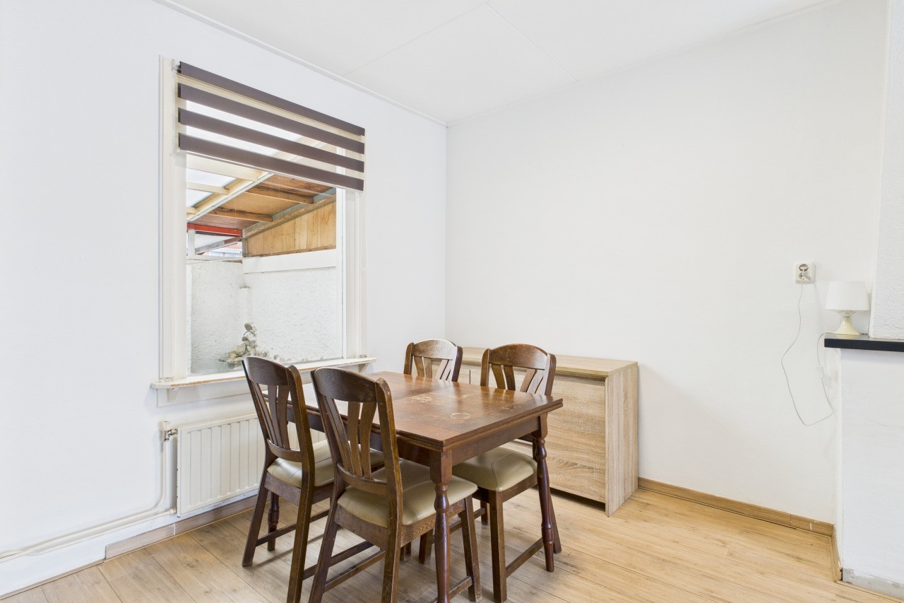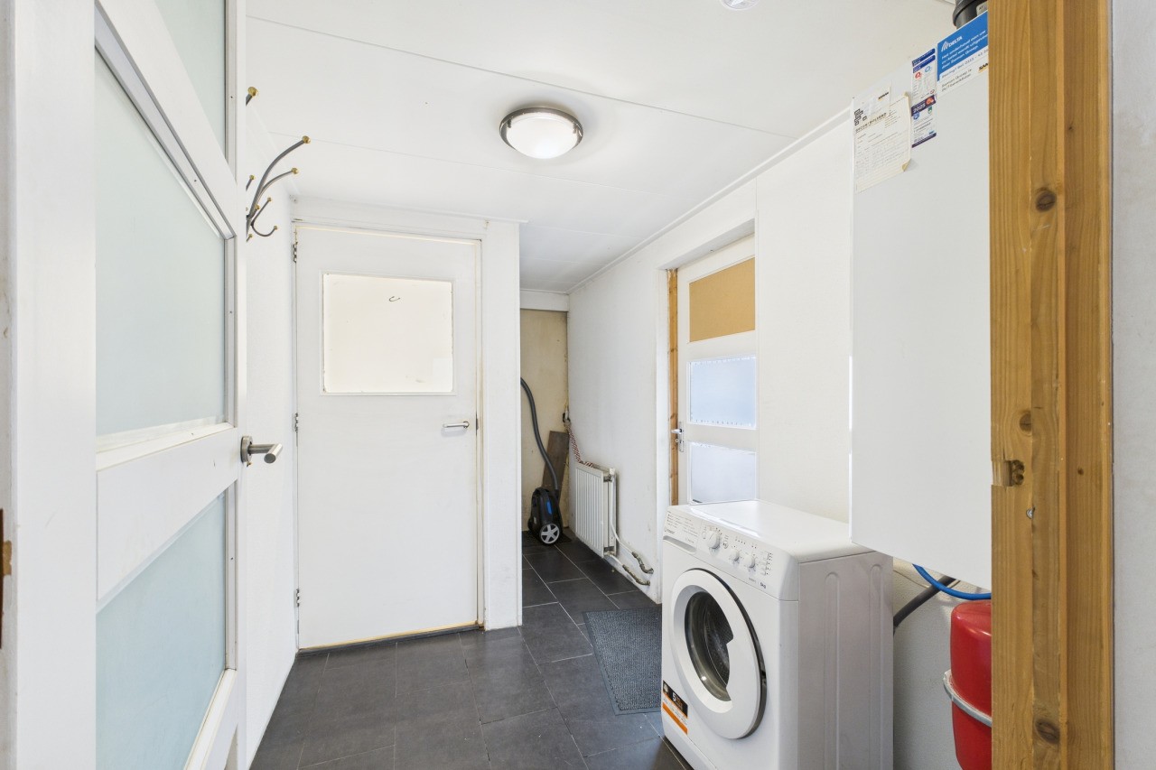 Bij binnenkomst kom je in de hal met trapopgang naar de verdieping en toegang tot de keuken. De halfopen keuken is voorzien van inbouwapparatuur en staat in verbinding met de lichte woonkamer, waar de zithoek aan de voorzijde en de eethoek aan de achterzijde zorgen voor een prettige indeling. In het midden van de kamer zorgt een sfeervolle schouw voor een warme uitstraling. Achter de keuken bevindt zich de bijkeuken met witgoedaansluiting, cv-opstelling en toegang tot het toilet, de aanbouw en de berging. De berging is inpandig bereikbaar en voorzien van elektra en water – praktisch voor fietsen of extra opslag.