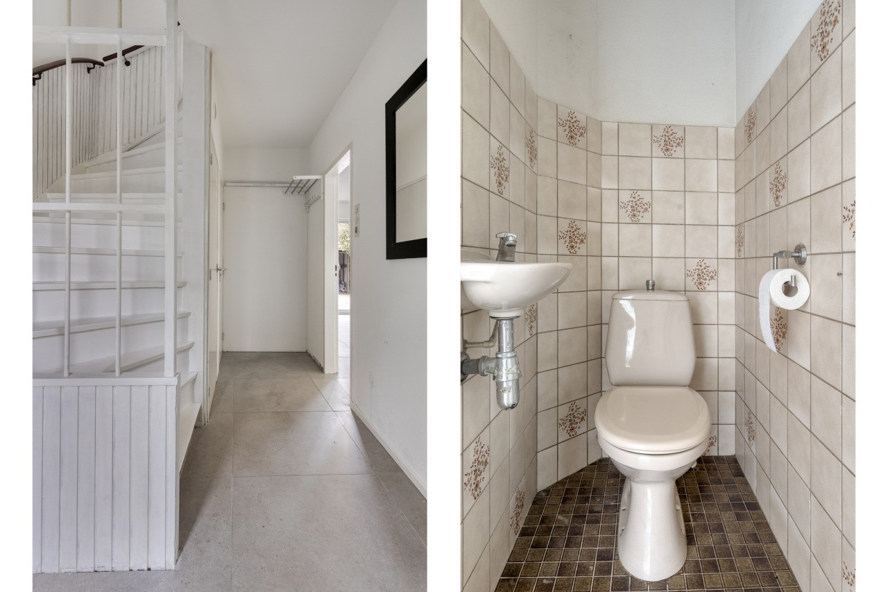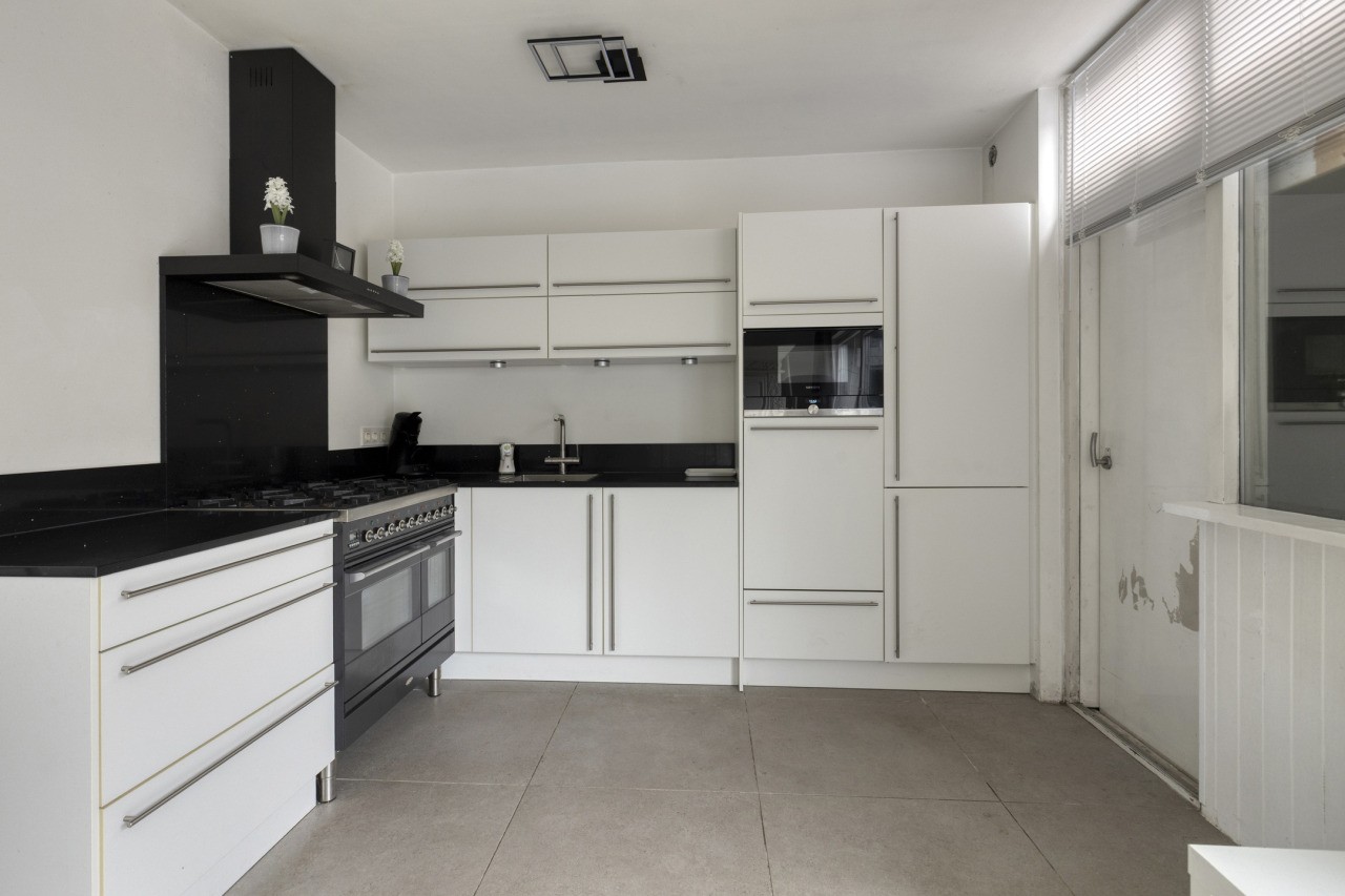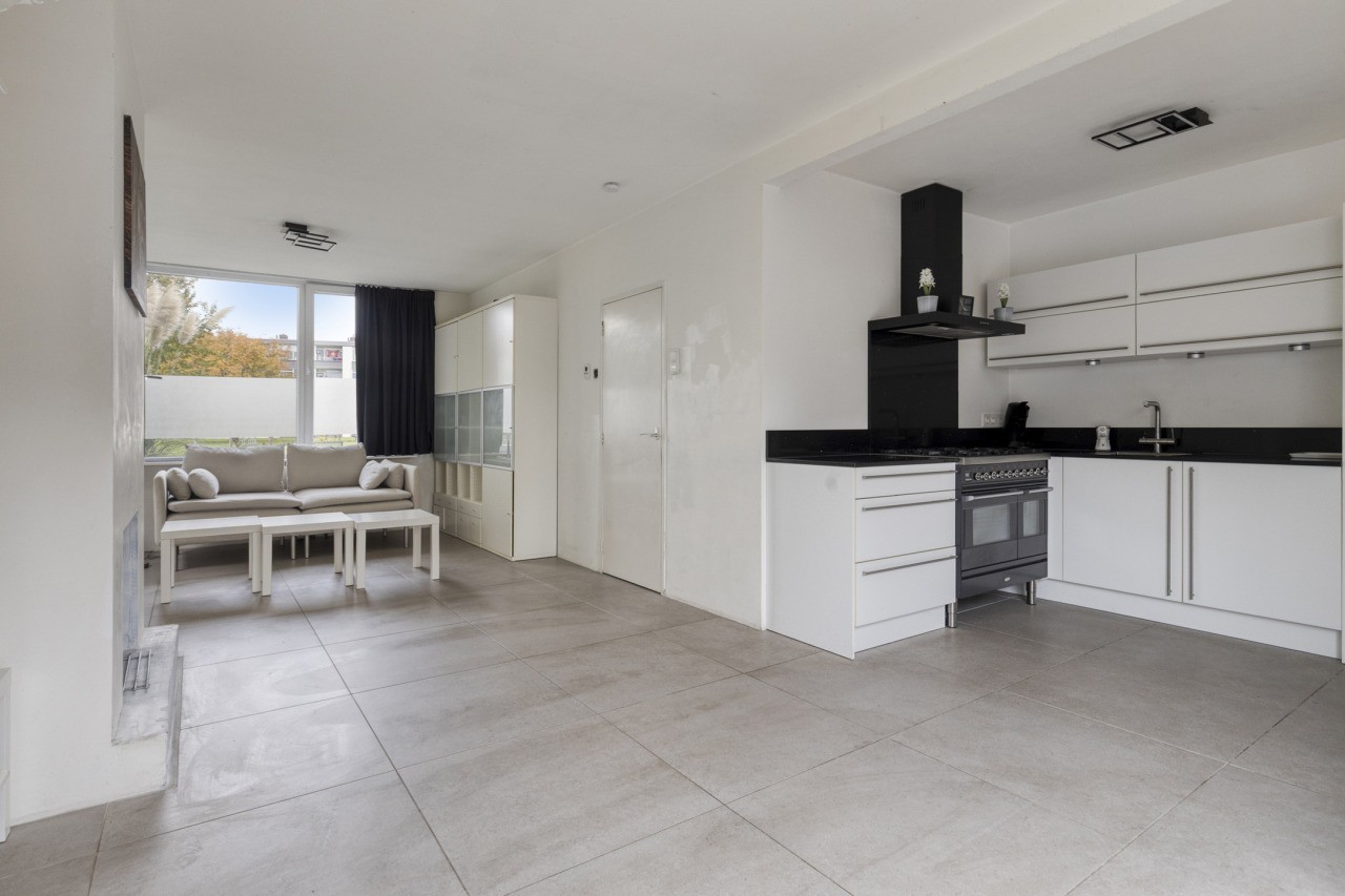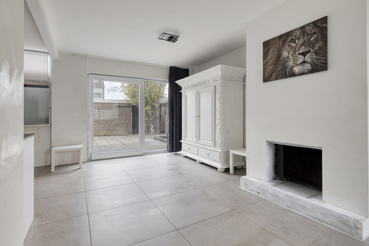 Je komt de woningen binnen in de hal met meterkast, trapopgang naar de verdieping, met trapkast, en het toilet. Vanuit de hal stap je de ruime woonkamer binnen, waar de schouw met open haard direct de aandacht trekt. De nette tegelvloer geeft de ruimte een verzorgde uitstraling, terwijl de grote schuifpui zorgt voor veel lichtinval en direct toegang biedt tot de achtertuin. De moderne open keuken (2020), uitgevoerd in een praktische hoekopstelling, is voorzien van alle benodigde inbouwapparatuur, zoals een gaskookplaat, afzuigkap, koelkast, vriezer, vaatwasser en spoelbak. Vanuit de keuken is er toegang tot een handige berging.