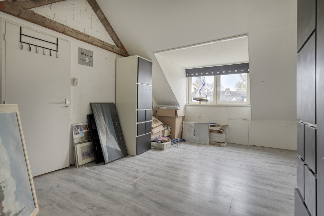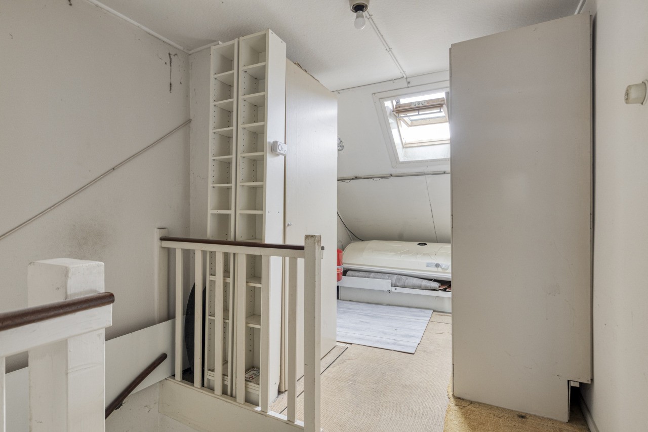 De tweede verdieping biedt een ruime overloop met berging en toegang tot een royale vierde slaapkamer. Dankzij de dakkapel geniet deze kamer van extra lichtinval en ruimte — ideaal als master bedroom, werkkamer of hobbyruimte.