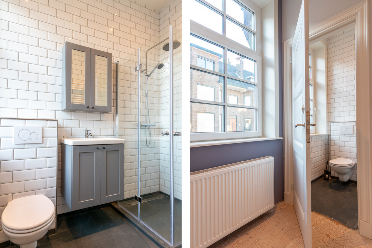 De stijlvolle badkamer, gelegen aan de voorzijde, is voorzien van een inloopdouche, toilet, wastafel en een designradiator. Aan de achterzijde van het appartement bevindt zich de rustige slaapkamer met uitzicht op de binnenplaats.