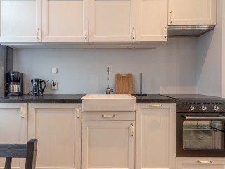Bij binnenkomst tref je een fris en eigentijds interieur, helemaal klaar voor een nieuwe bewoner. Vanuit de hal heb je toegang tot de badkamer en de lichte woonkamer met open keuken. De keuken is voorzien van moderne inbouwapparatuur en heeft tevens extra, ingebouwde, bergruimte. Vanuit de woonkamer is ook de slaapkamer bereikbaar welke toegang geeft tot de binnenplaats. De badkamer is eveneens stijlvol vernieuwd en beschikt over een douche, toilet en een wastafel.