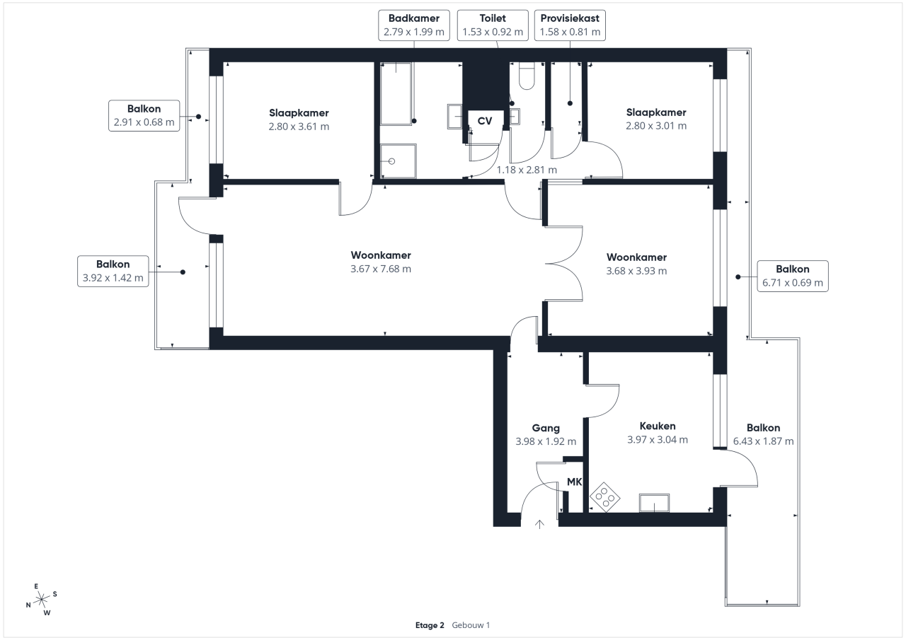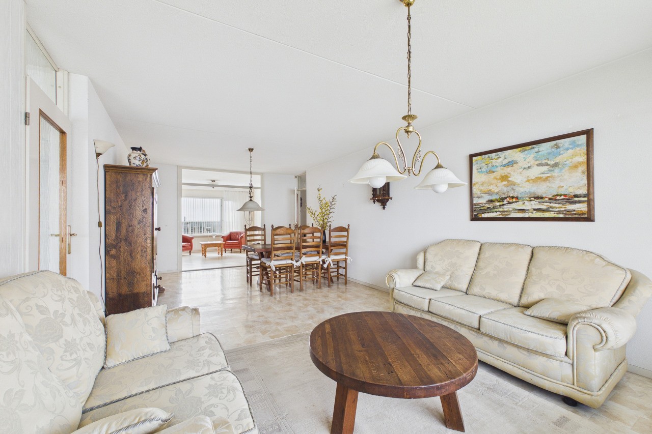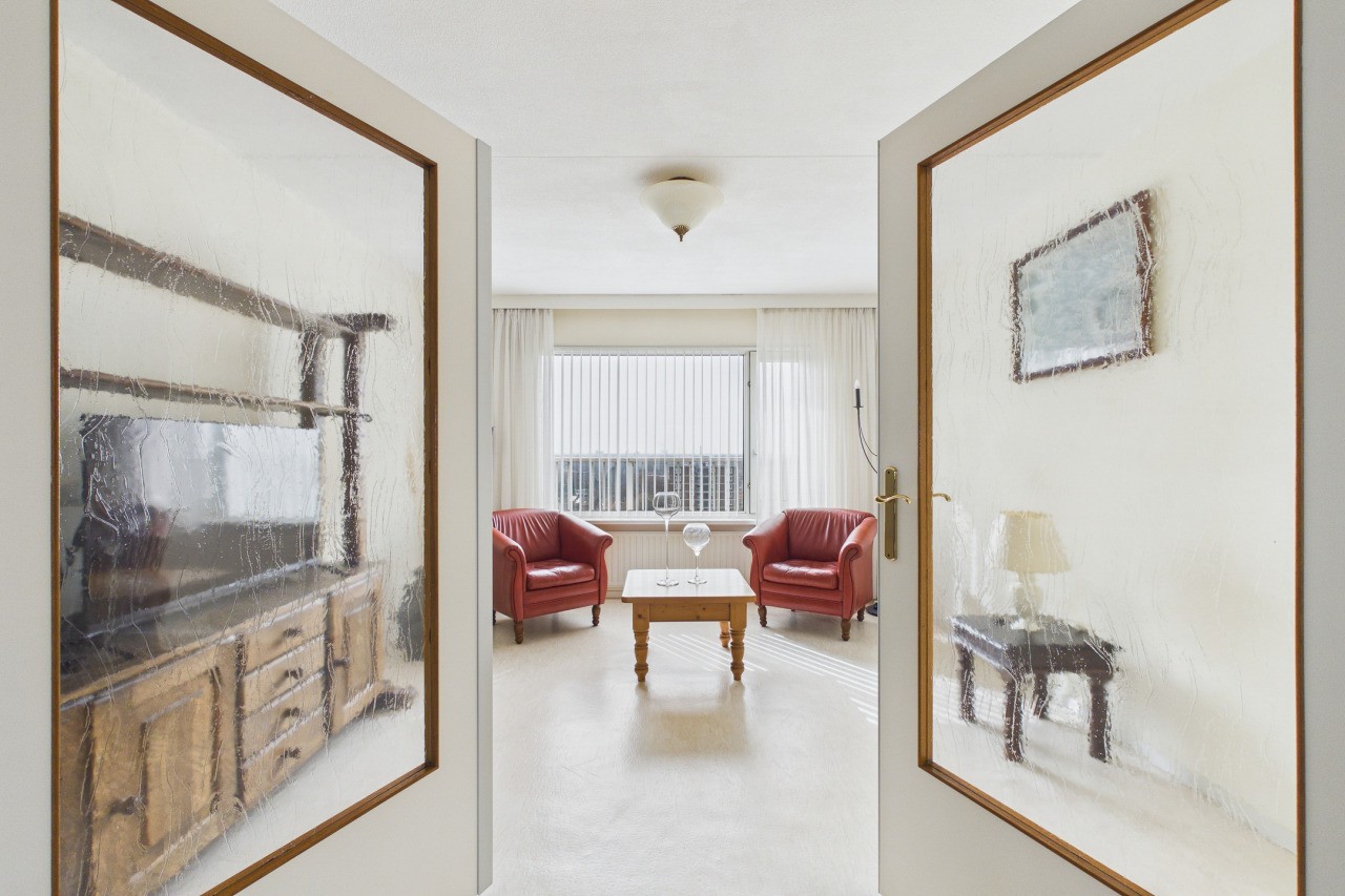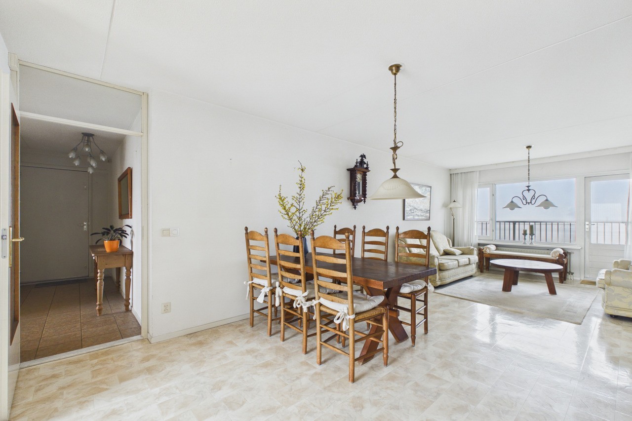 De doorzonwoonkamer is heerlijk licht en biedt de mogelijkheid om deze middels tussendeuren op te delen in twee separate ruimtes. Vanuit de woonkamer stap je zo het balkon aan de zeezijde op, met een prachtig panoramisch uitzicht over de druk bevaren Westerschelde. Tevens heb je vanuit de woonkamer toegang tot de eerste slaapkamer. Via een portaal bereik je het toilet met fonteintje, de cv-ruimte, een praktische provisieruimte, de badkamer en de tweede slaapkamer. De badkamer is compleet ingericht met een ligbad, douchecabine, wastafel en aansluitingen voor witgoedapparatuur.