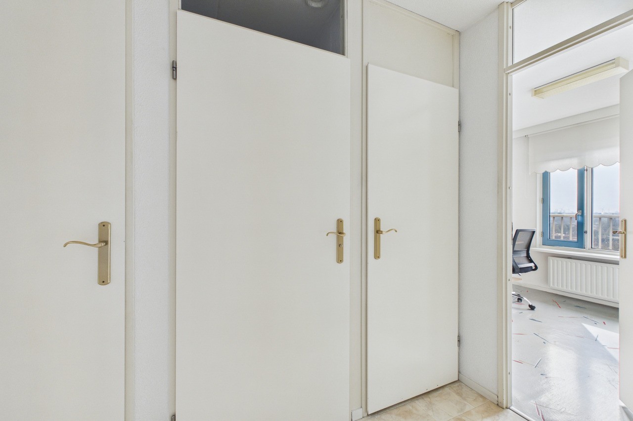 Je komt het appartementencomplex binnen in de centrale hal met elektrische toegangsdeuren, intercom en postboxen. De centrale hal biedt toegang tot de lift, de trappenhal en de bergingen, welke zich op de eerste verdieping bevinden.