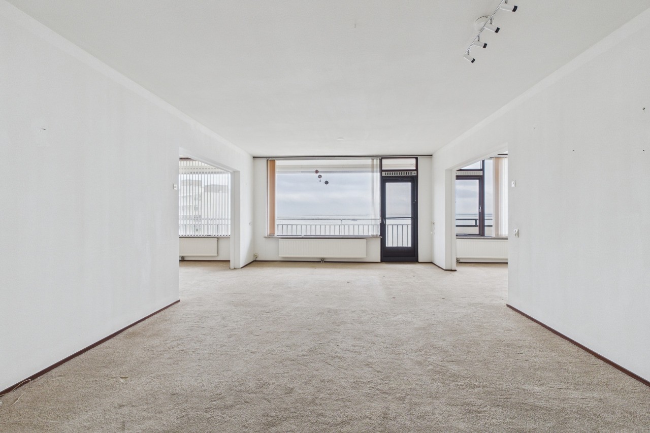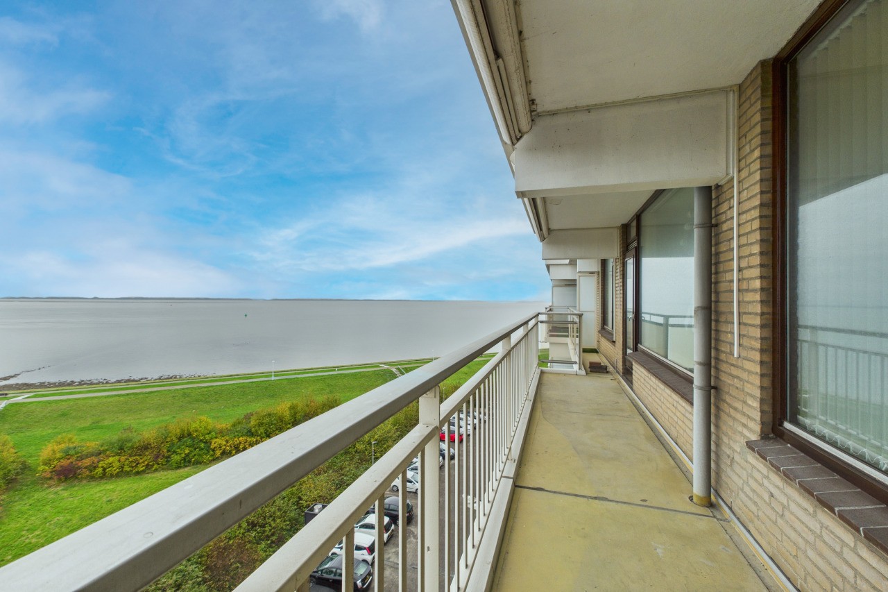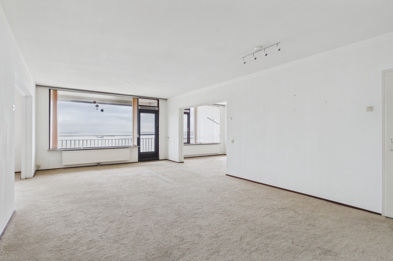 De woonkamer heeft een T-vormige indeling en is opvallend licht dankzij de grote ramen en de open verbinding met voormalige slaapkamers. Hierdoor is er een royale leefruimte ontstaan met een panoramisch uitzicht over de Westerschelde. Vanuit de woonkamer stap je zo het balkon aan de zeezijde (circa 13 m²) op – hier geniet je van de middag- en avondzon en van het steeds veranderende schouwspel van scheepvaart en getij.