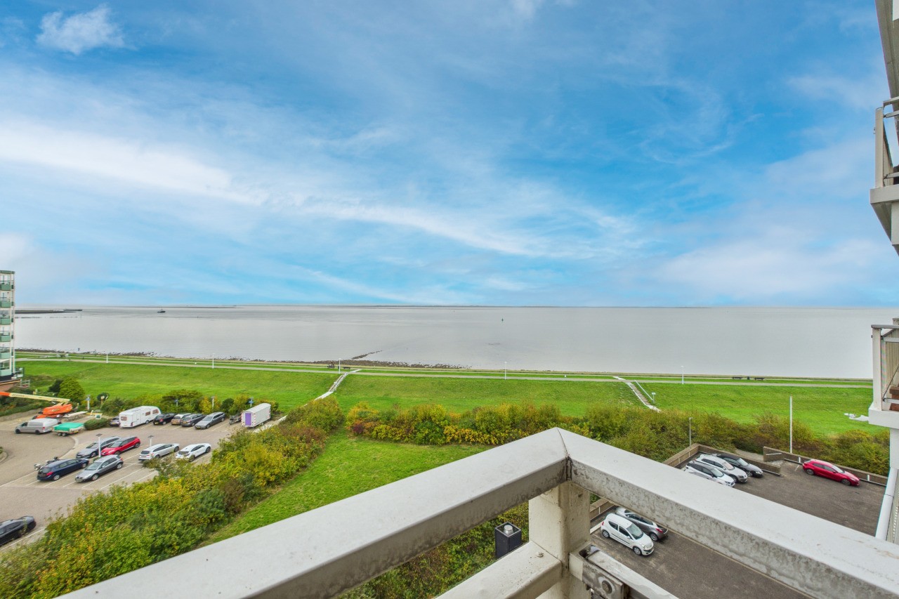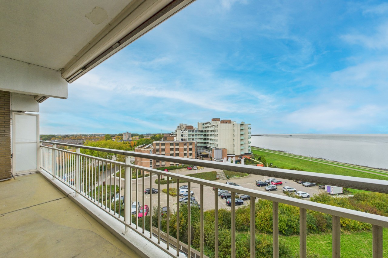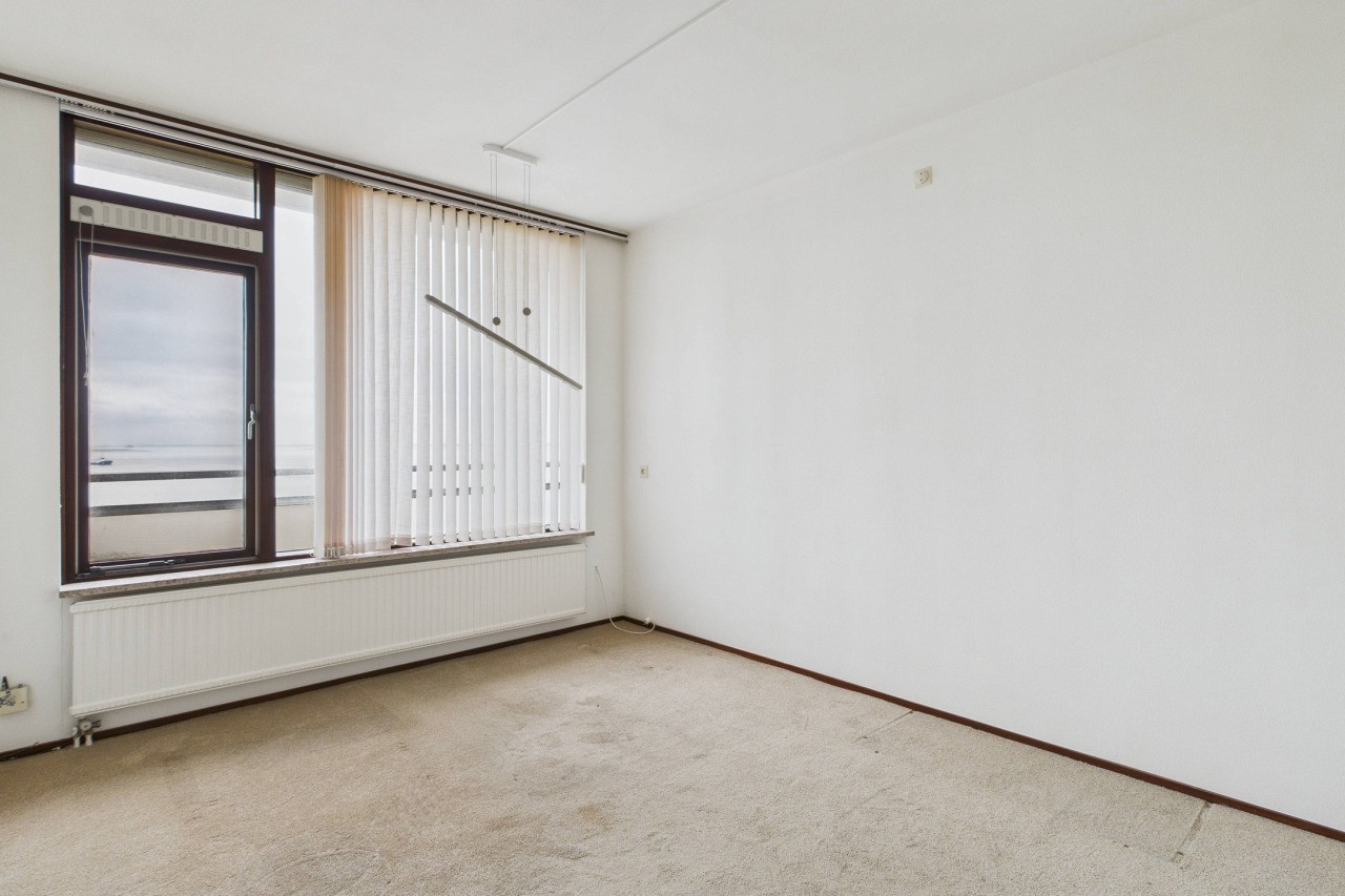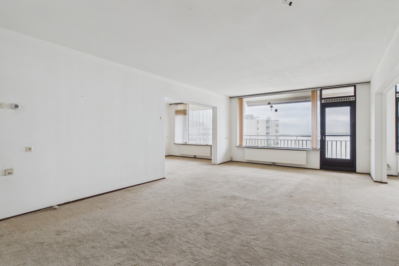 De woonkamer heeft een T-vormige indeling en is opvallend licht dankzij de grote ramen en de open verbinding met voormalige slaapkamers. Hierdoor is er een royale leefruimte ontstaan met een panoramisch uitzicht over de Westerschelde. Vanuit de woonkamer stap je zo het balkon aan de zeezijde (circa 13 m²) op – hier geniet je van de middag- en avondzon en van het steeds veranderende schouwspel van scheepvaart en getij.
