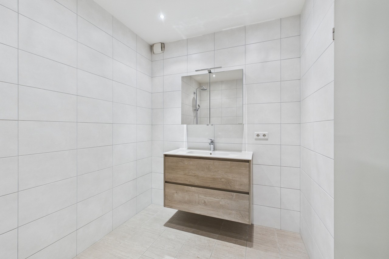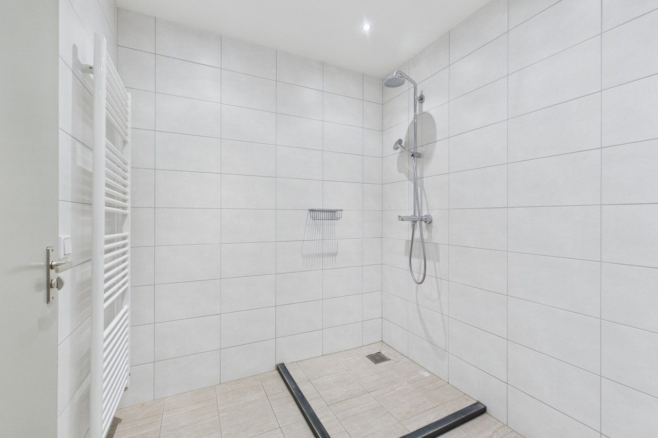 Aan de achterzijde bevinden zich twee slaapkamers van respectievelijk 13 en 23 m², een moderne badkamer met douchehoek en wastafelmeubel, een tweede toilet en een handige provisiekast.