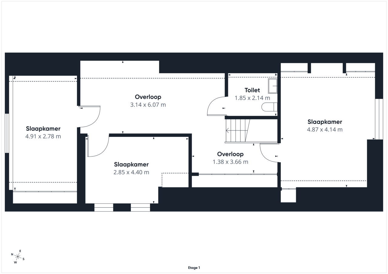 Op de eerste verdieping liggen drie ruime slaapkamers met vaste kastruimte en airconditioning. Een tweede toilet met wastafel en de extra kastruimte op de overloop maken de verdieping overzichtelijk en praktisch.