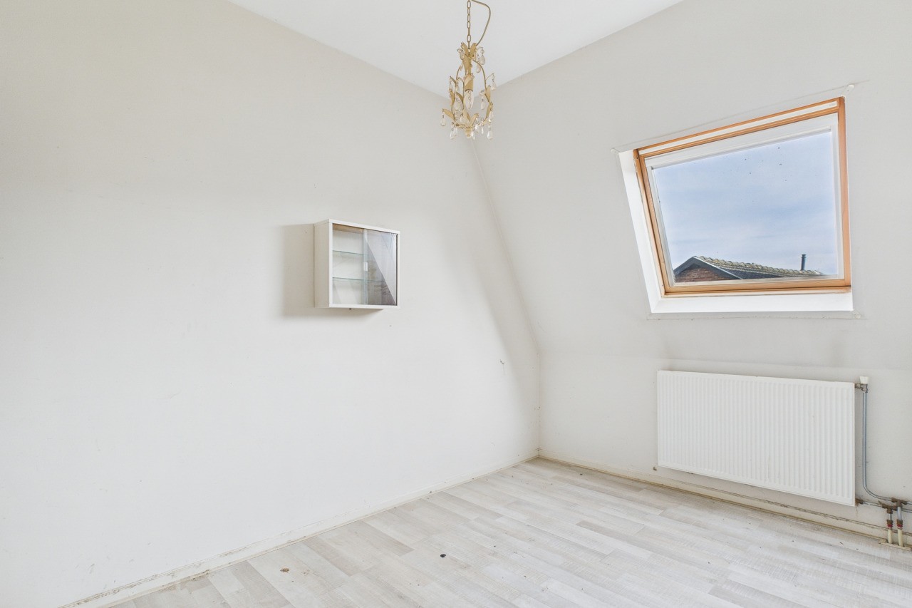 Vanaf de overloop op de eerste verdieping is de zolder bereikbaar. Deze bergzolder biedt praktische opslagruimte.