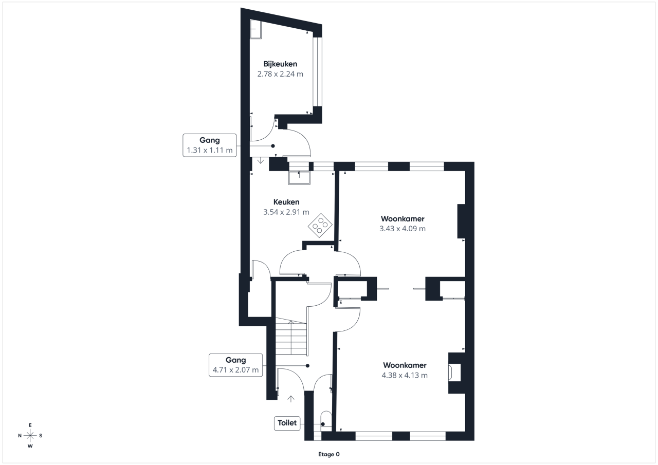 Bij binnenkomst op de begane grond kom je in de hal met het toilet en de trapopgang naar de eerste verdieping. Vanuit hier betreed je de woonkamer ensuite, een ruimte met karakter dankzij de handige inbouwkasten en de aanwezige haard. De dichte keuken grenst aan de woonkamer en biedt volop mogelijkheden om hier een prachtige, moderne keuken te realiseren. Achter de keuken bevindt zich een tussenportaal met toegang tot de patio/stadstuin. Aansluitend is de bijkeuken gesitueerd, voorzien van een wateraansluiting en extra bergruimte.