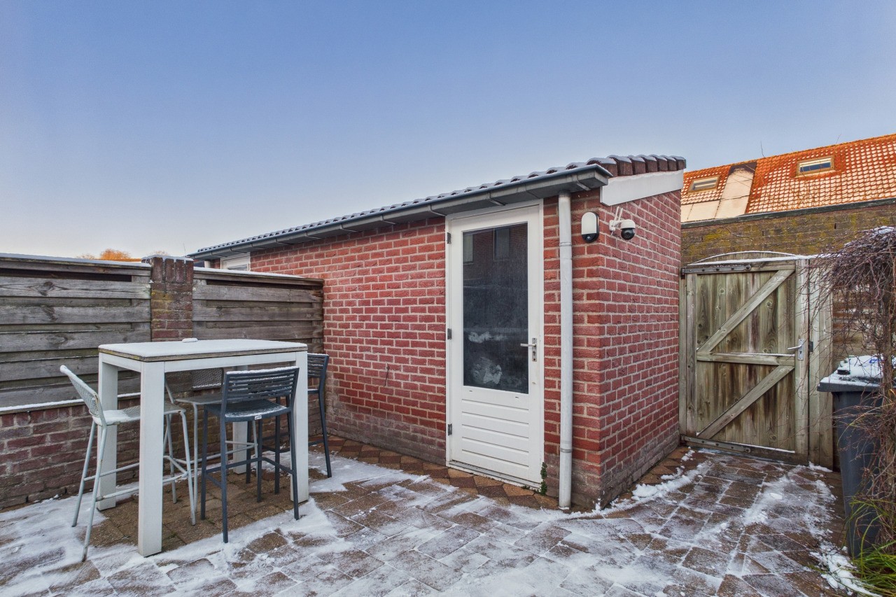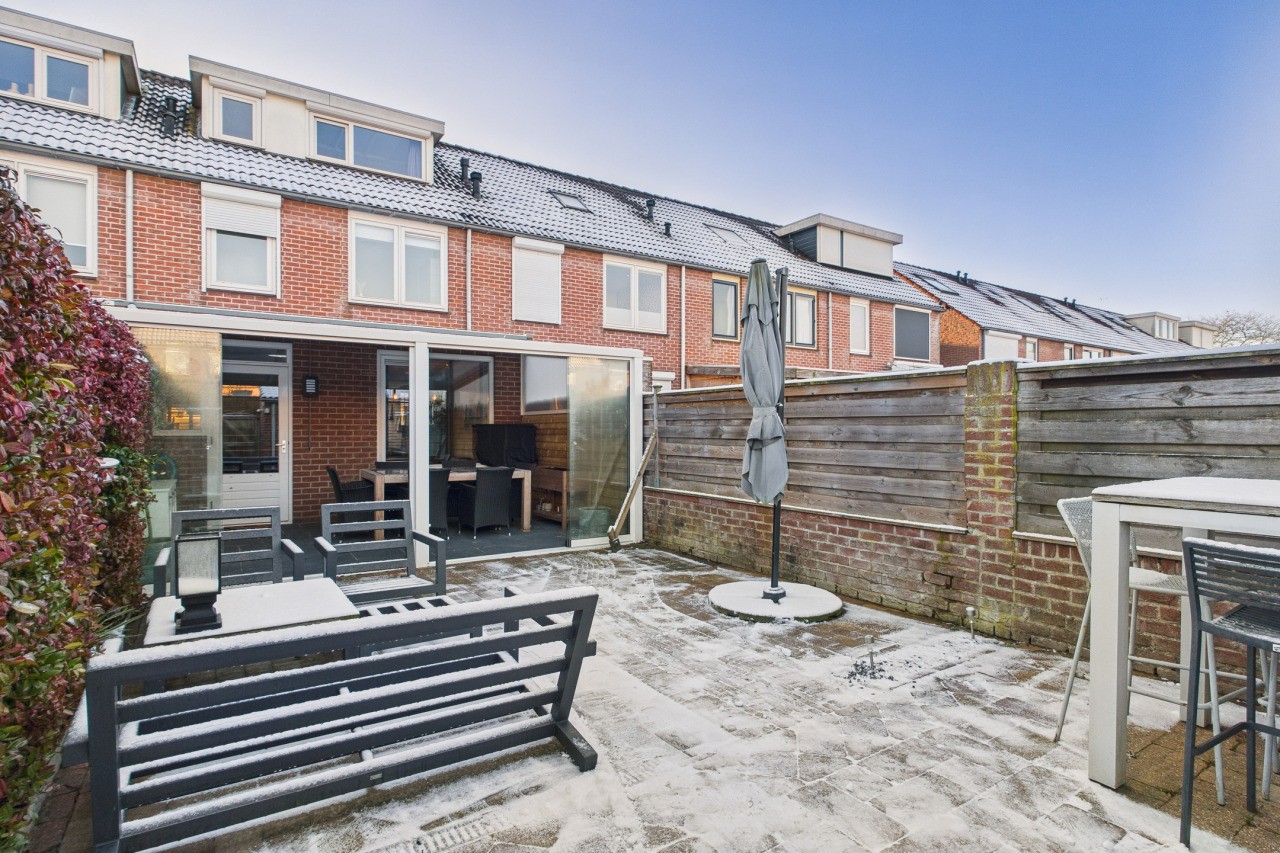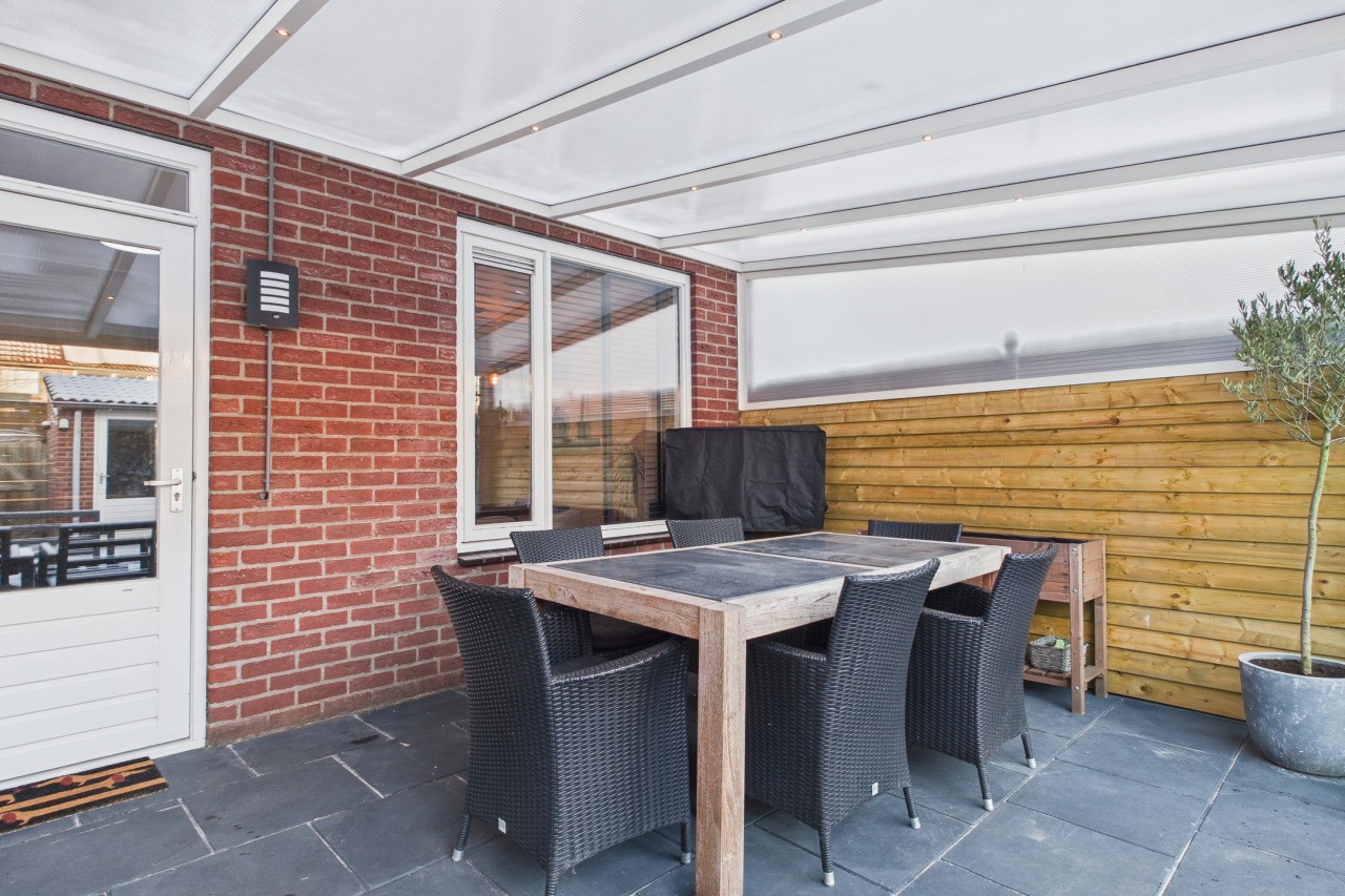 Aansluitend aan de keuken ligt de serre, uitgerust met geïntegreerde verlichting en een mooie lichtinval. Een plek waar je het hele jaar door van het uitzicht op de tuin geniet. De onderhoudsvriendelijke achtertuin ligt op het noordwesten en is voorzien van een stenen berging en een vrije achterom. Dankzij de open omgeving en minimale bebouwing valt er veel zonlicht binnen, waardoor het een prettige plek is om te ontspannen, te tuinieren of buiten te eten met vrienden.