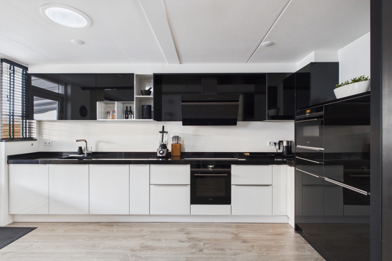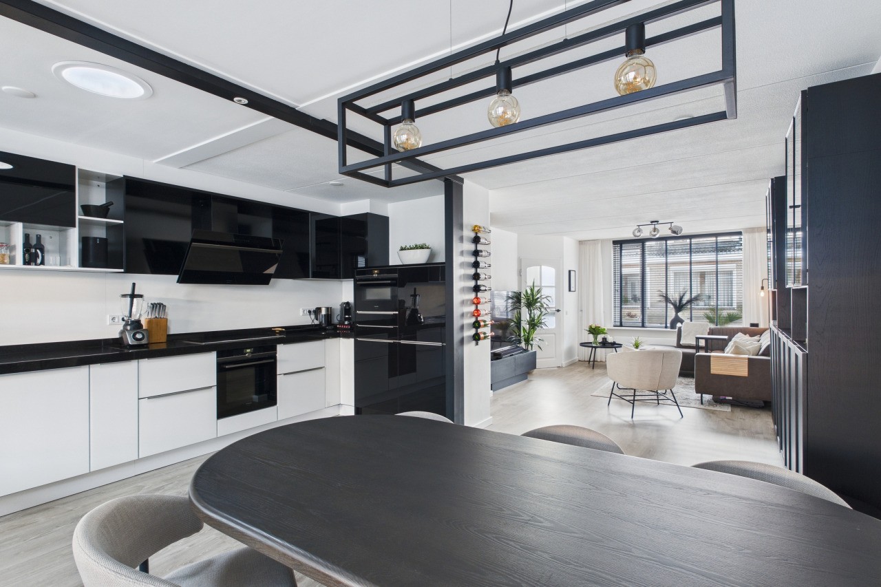 Via de hal, met meterkast en een toiletruimte met fonteintje, stap je de woonkamer binnen. Deze lichte doorzonruimte is ingericht met een comfortabele zithoek aan de voorzijde en een gezellige eethoek aan de achterzijde. De open keuken sluit hier naadloos op aan en is in 2023 volledig vernieuwd. Met diverse, luxe inbouwapparatuur en een stijlvol natuurstenen werkblad is koken hier een plezier en biedt het voldoende ruimte om samen te zijn. Vanuit de woonkamer bereik je de afgesloten hal met trapopgang naar de verdieping.