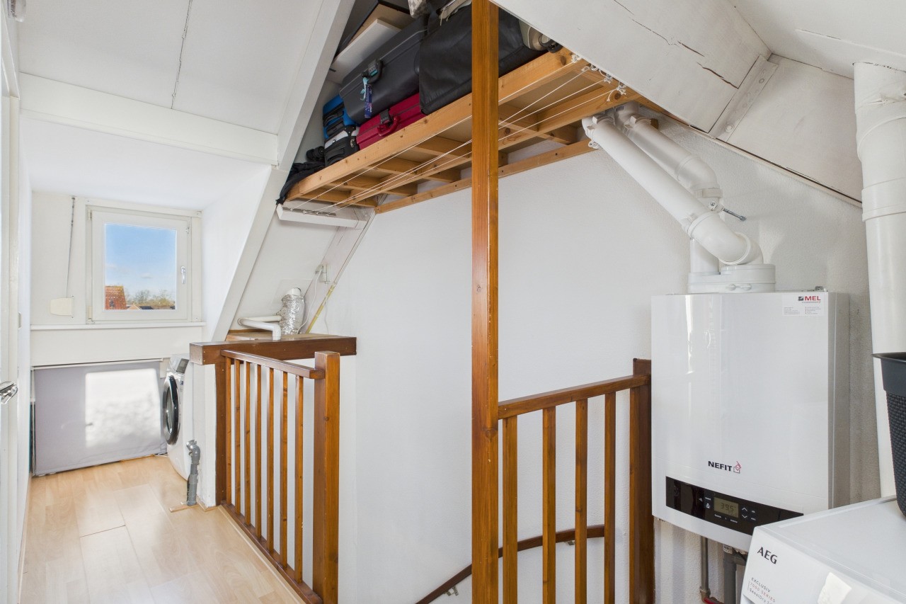 Op deze verdieping is extra bergruimte aanwezig en bevindt zich de vierde slaapkamer. Dankzij de dakkapel is dit een volwaardige en lichte kamer geworden. Hier zijn tevens de cv-opstelling en de aansluitingen voor het witgoed gesitueerd, waardoor de ruimte efficiënt en praktisch in gebruik is.