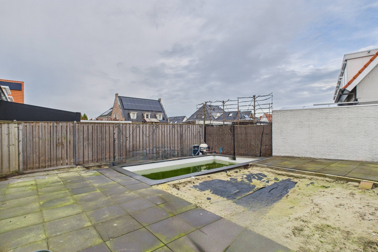 De achtertuin ligt op het noorden en is ingericht met meerdere terrassen en het zwembad. De tuin beschikt over een vrije achterom en biedt voldoende ruimte voor diverse indelingsmogelijkheden.