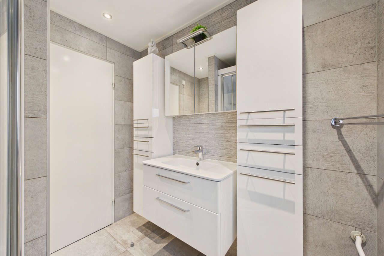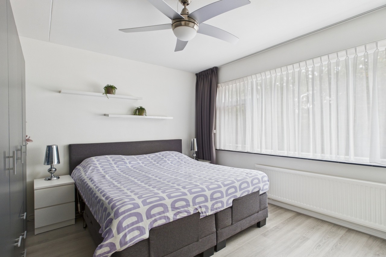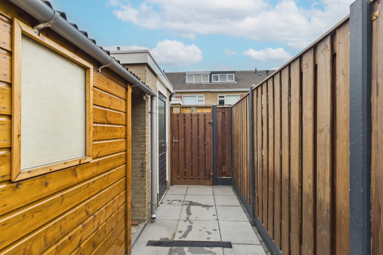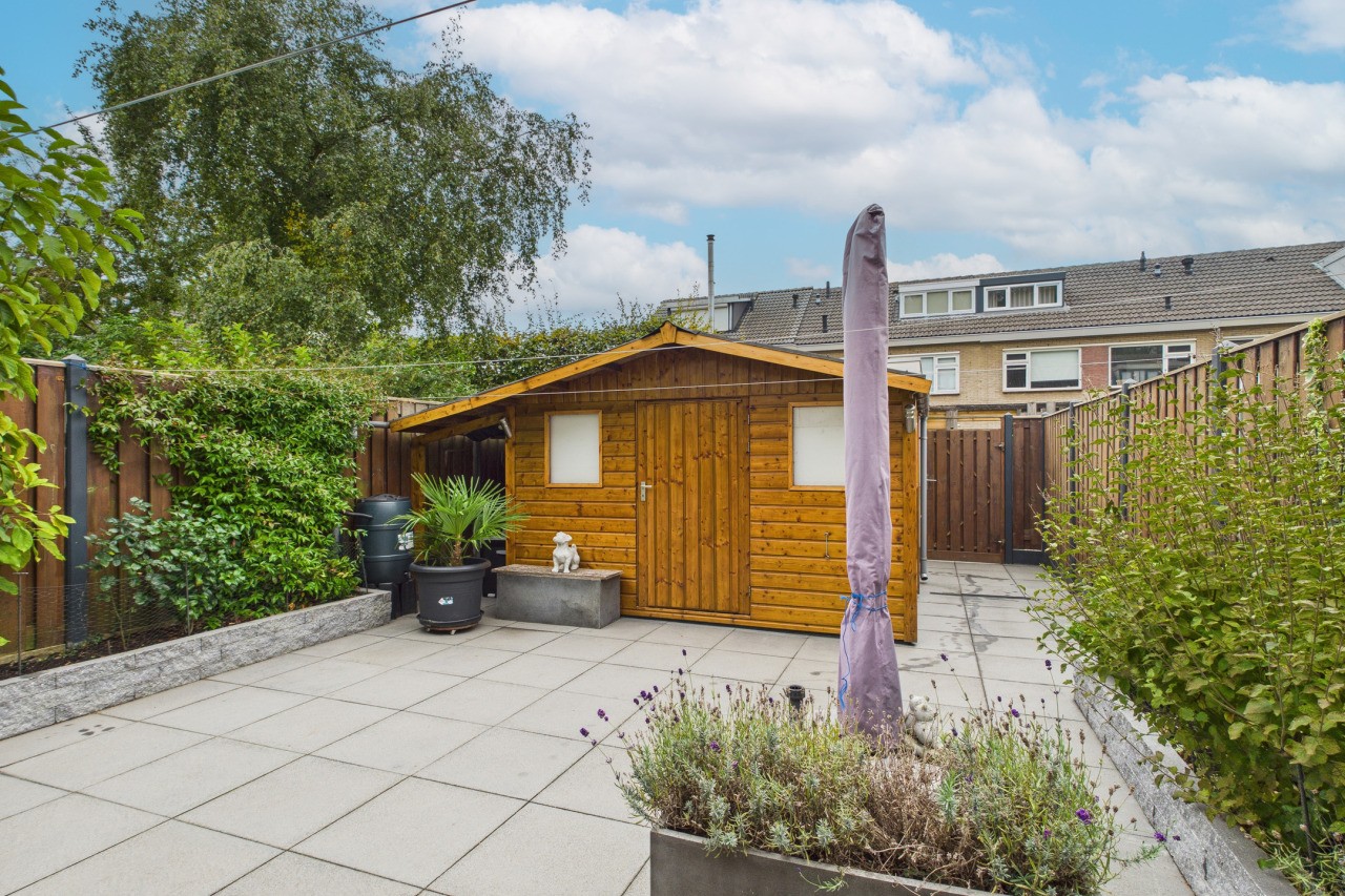 De achtertuin is verzorgd aangelegd, heeft een achterom naar de brandgang en beschikt over een geïsoleerd houten tuinhuis (6 m²) en een stenen berging (9 m²). De woning is grotendeels voorzien van rolluiken en dankzij de goede isolatie, zonnepanelen en hybride ketel zijn de energielasten bovendien gunstig te noemen.
