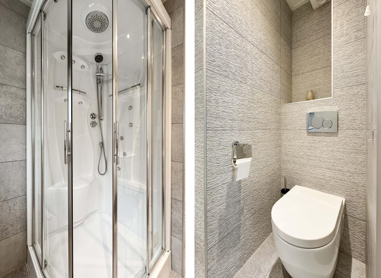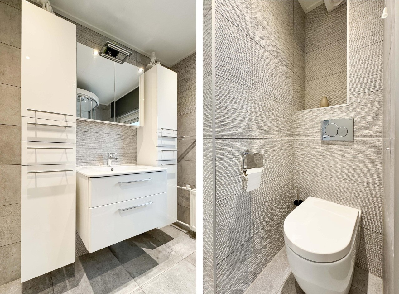 De indeling is praktisch en eigentijds. Op de begane grond bevindt zich een ruime woonkamer met schuifpui naar de serre (2017) en een open keuken in hoekopstelling met veel kastruimte, inductiekookplaat, combioven, afzuigkap, vaatwasser, koelkast en vriezer. Op de eerste verdieping zijn drie slaapkamers en een moderne badkamer met wastafelmeubel, douchecel en tweede toilet. De tweede verdieping biedt een vierde slaapkamer en extra bergruimte.