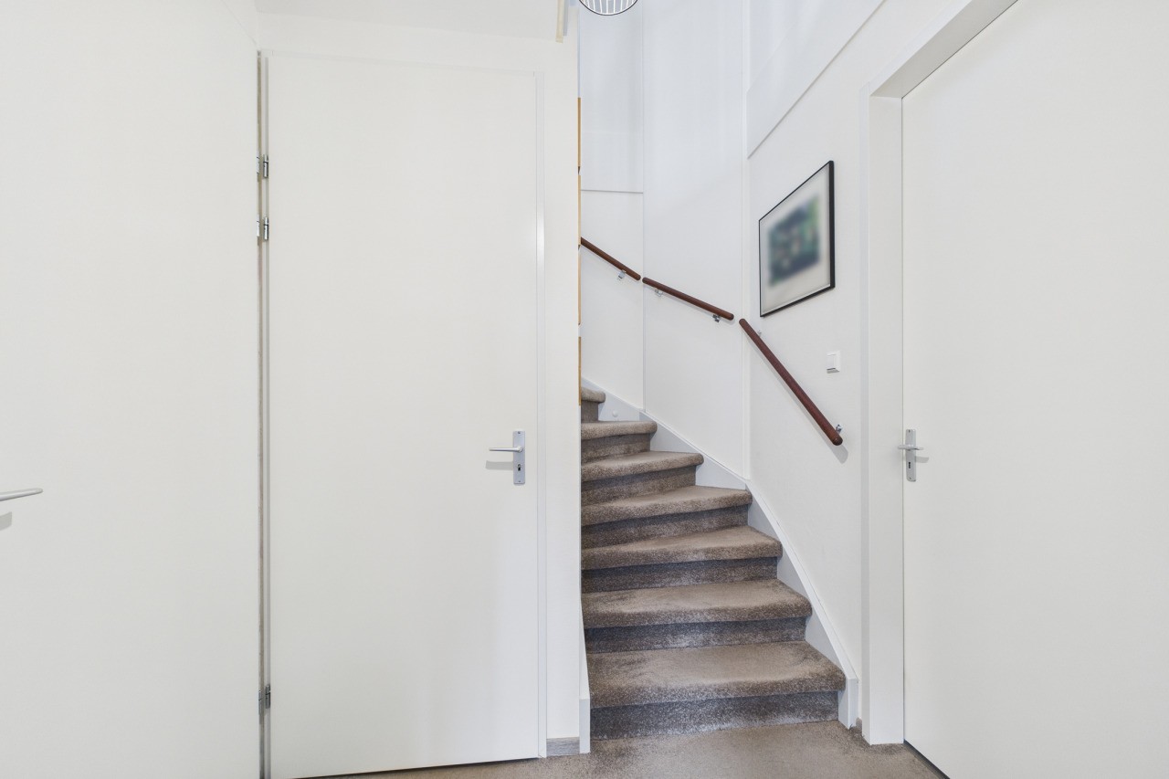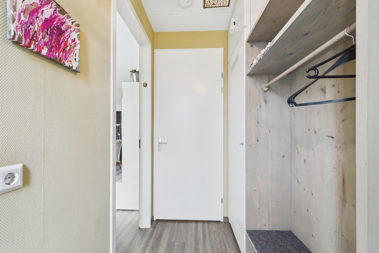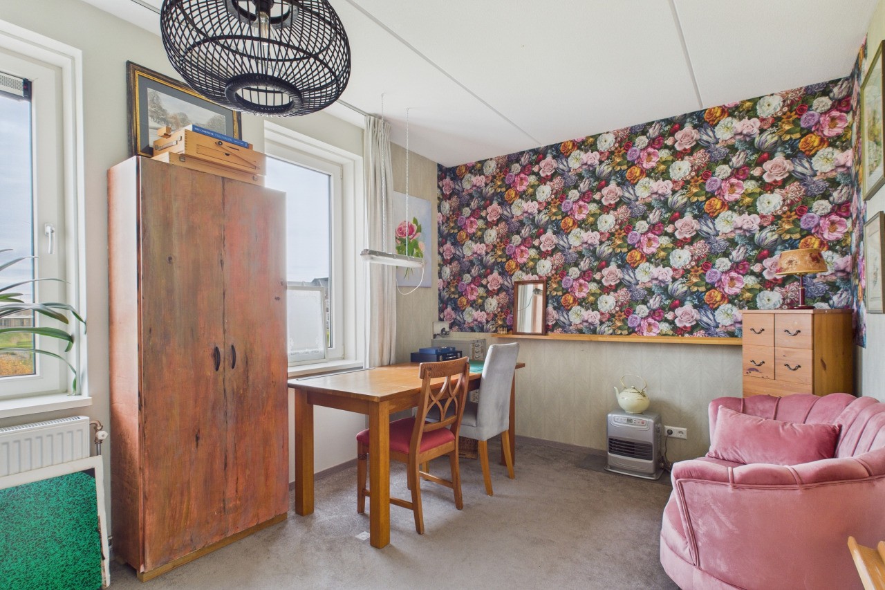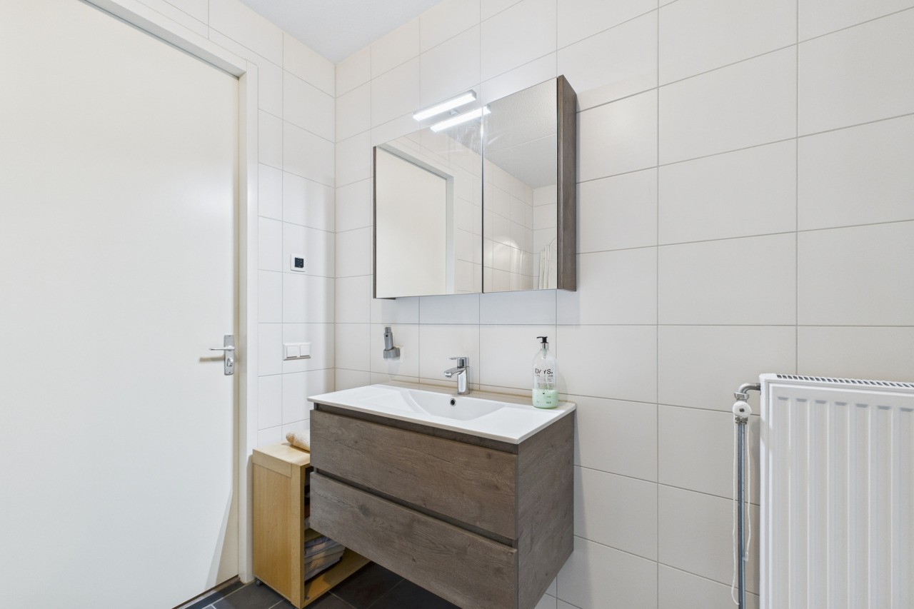 Aan de achterzijde van de woning bevindt zich het lichte en sfeervolle woongedeelte met aansluitend de serre, waar je via een schuifpui het balkon bereikt: een heerlijke plek om te genieten! Op de begane grond bevindt zich verder een royale slaapkamer en de moderne badkamer met inloopdouche, wastafelmeubel en toilet, wat gelijkvloers wonen bijzonder comfortabel maakt.