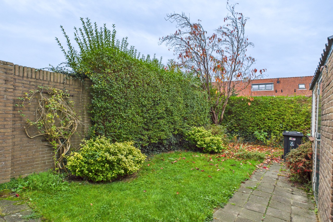 De woning beschikt over een voor- en achtertuin, waarbij de achtertuin is voorzien van een achterom en een vrijstaande stenen berging.