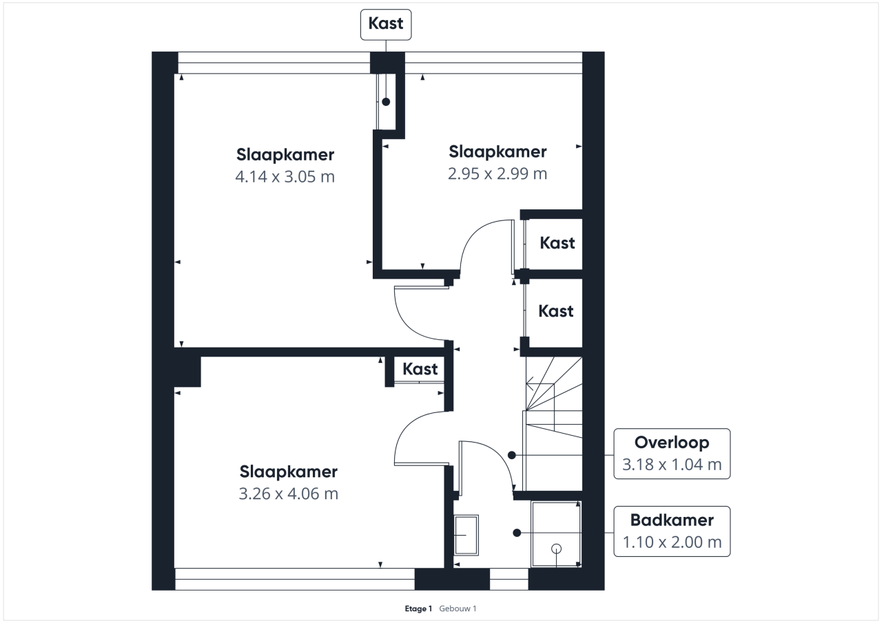 Overloop met luik naar de zolder (bereikbaar via een schuiftrap), vaste bergkast, 3 slaapkamers met vaste kasten en een nette badkamer met wastafel en douche.