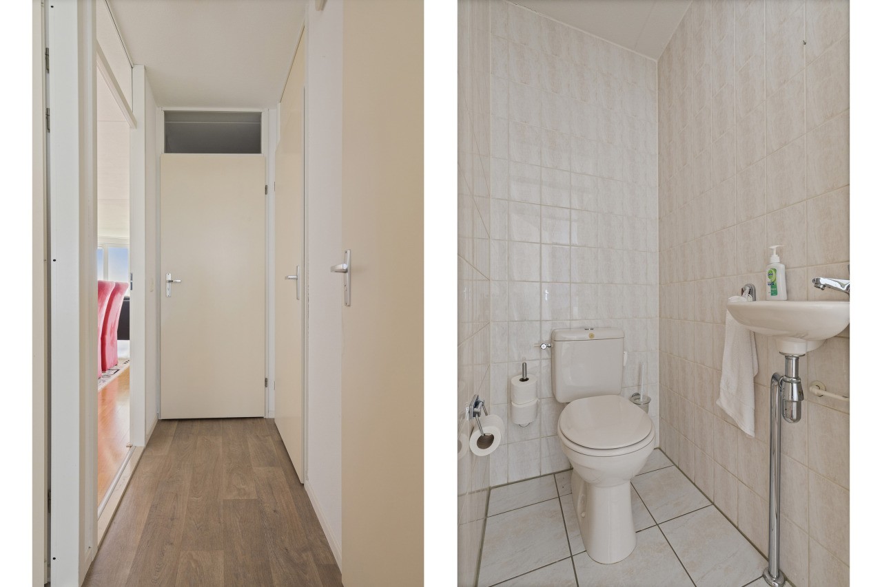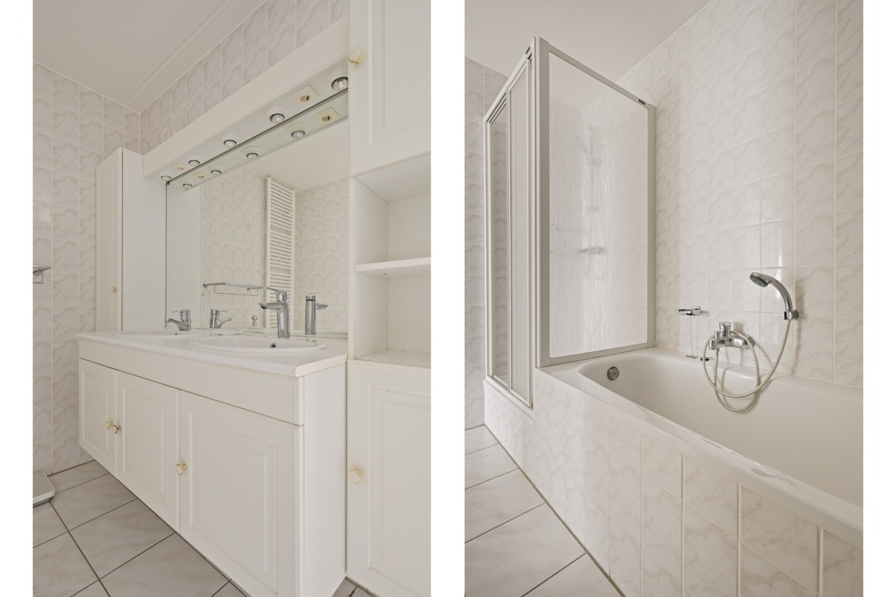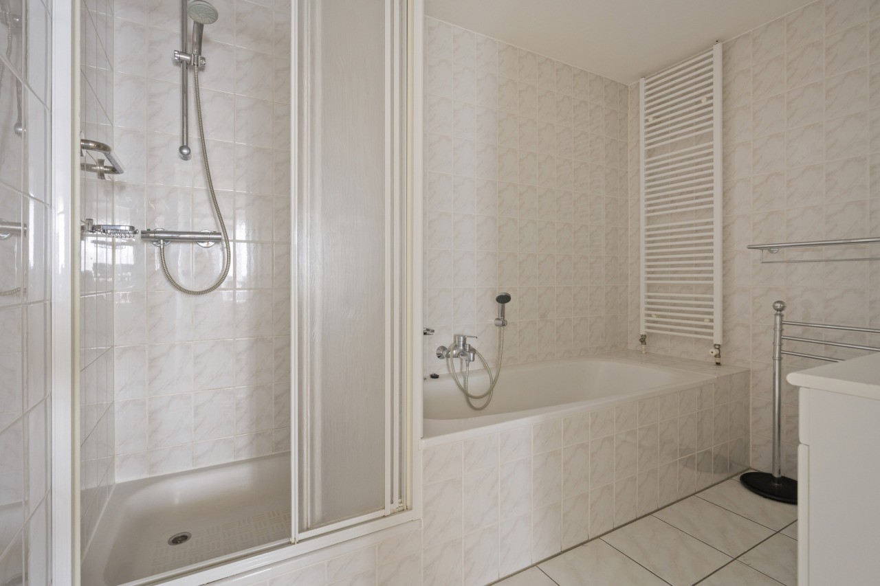 Vanuit de woonkamer bereik je een gang die toegang geeft tot de meer privé gelegen ruimtes van het appartement. Hier bevinden zich twee slaapkamers, beide van goed formaat en praktisch in te delen. Daarnaast vind je hier het toilet met fonteintje, de badkamer met ligbad, douchecabine en wastafelmeubel, en de bijkeuken. In deze praktische ruimte bevinden zich de opstelplaats voor de cv-installatie, de mechanische ventilatie en de aansluitingen voor witgoedapparatuur.