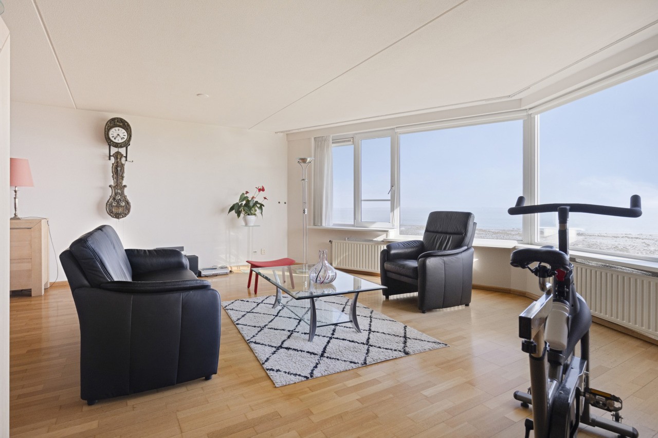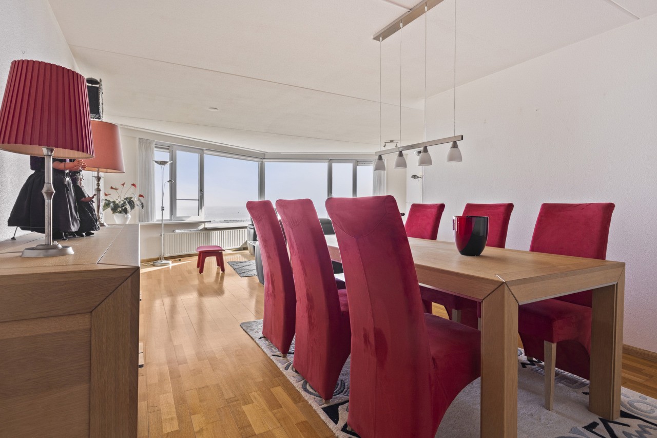 Je komt het appartement binnen in de hal met meterkast en intercom. Vanuit hier zijn zowel de keuken als de woonkamer bereikbaar, wat zorgt voor een logische en prettige indeling. De woonkamer is ruim opgezet en heeft een L-vorm, waardoor je eenvoudig een fijne zit- en eethoek creëert. Dankzij de grote raampartijen voelt de ruimte licht en open aan en geniet je hier van een weids uitzicht over de Westerschelde.