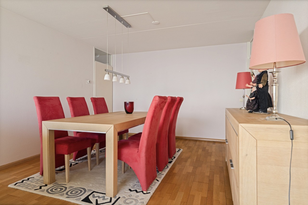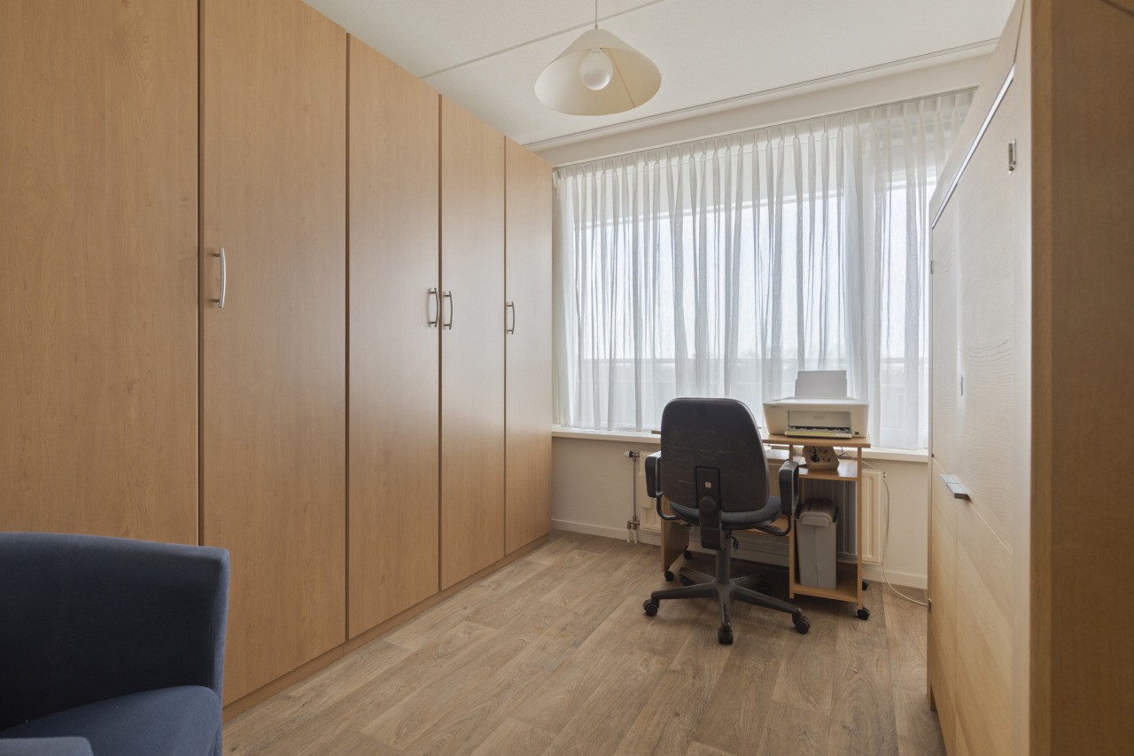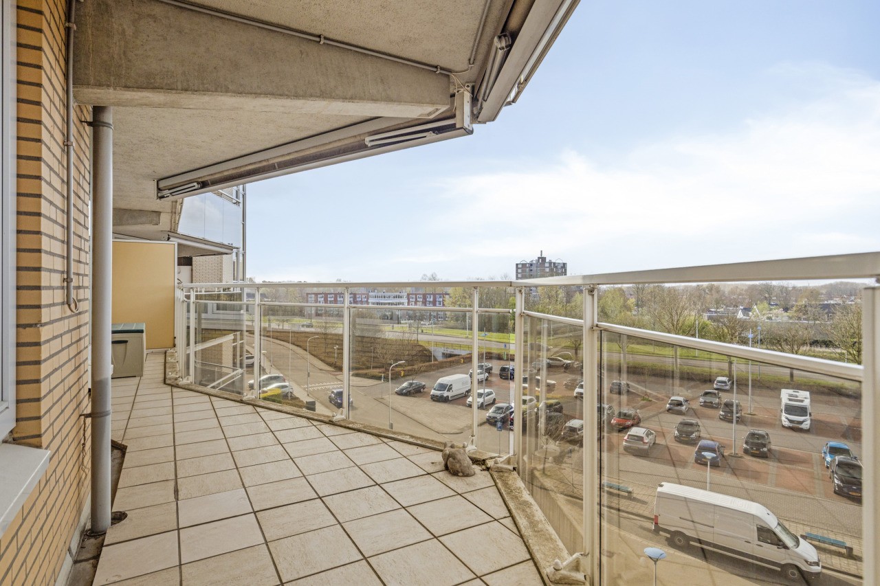 De woonkeuken is uitgevoerd in een rechte opstelling en voorzien van de benodigde inbouwapparatuur. Vanuit de keuken heb je toegang tot het zonnige balkon, waar je een fijne plek hebt om buiten te zitten met uitzicht over de stad.