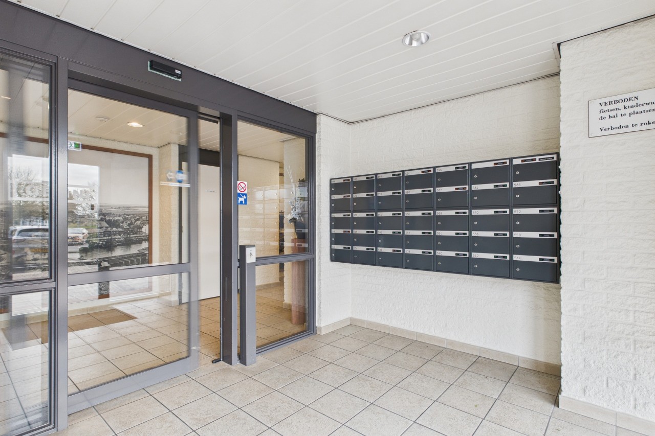 Bij binnenkomst in het appartementencomplex \"Gemini\" word je verwelkomd in de centrale hal met brievenbussen, intercom, lift en trappenhal, wat zorgt voor een veilige en gemakkelijke toegang tot het appartement.