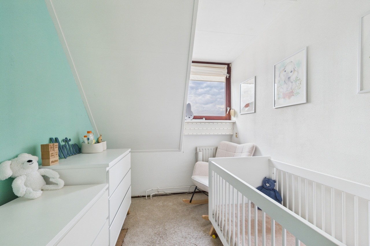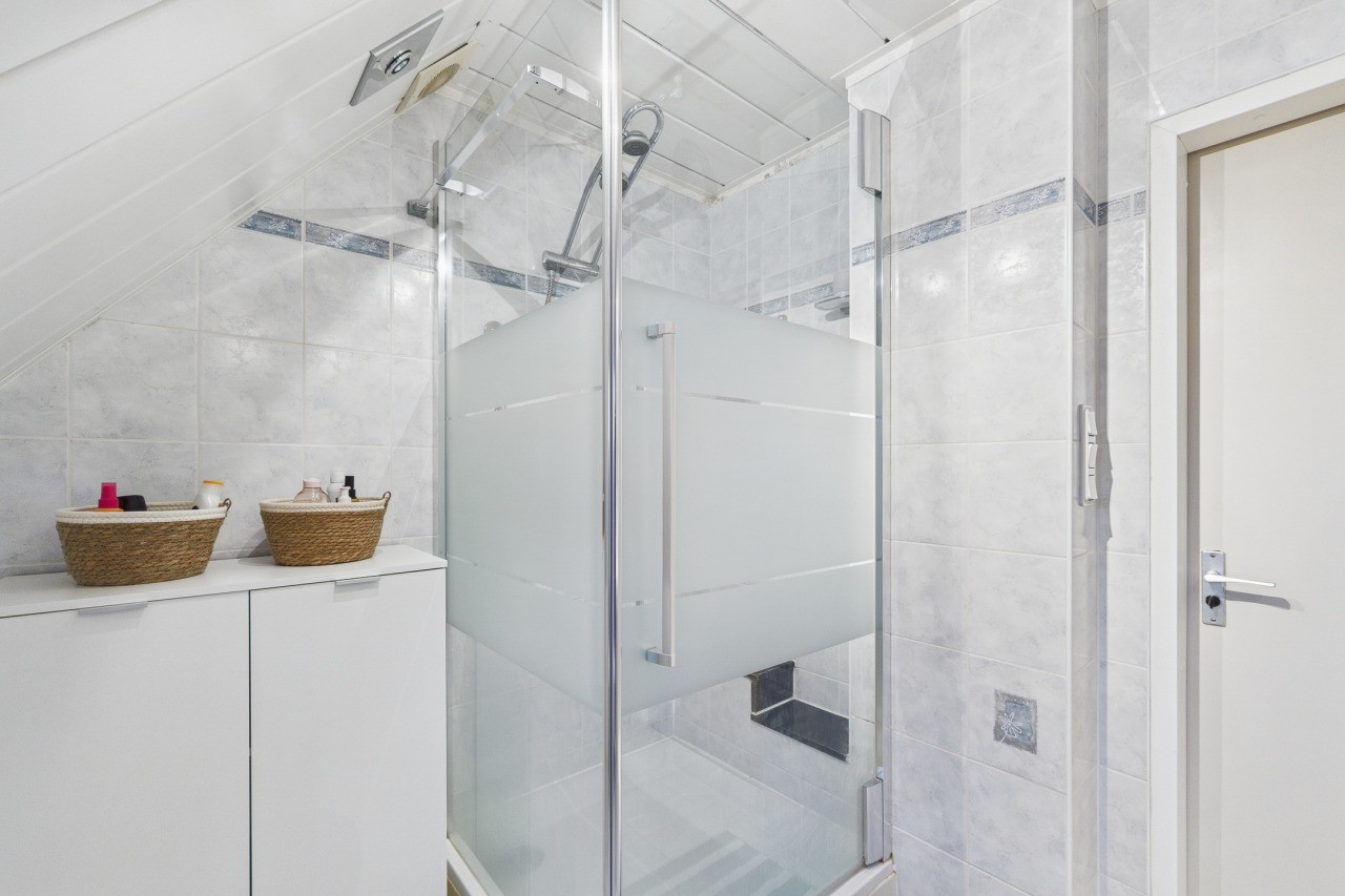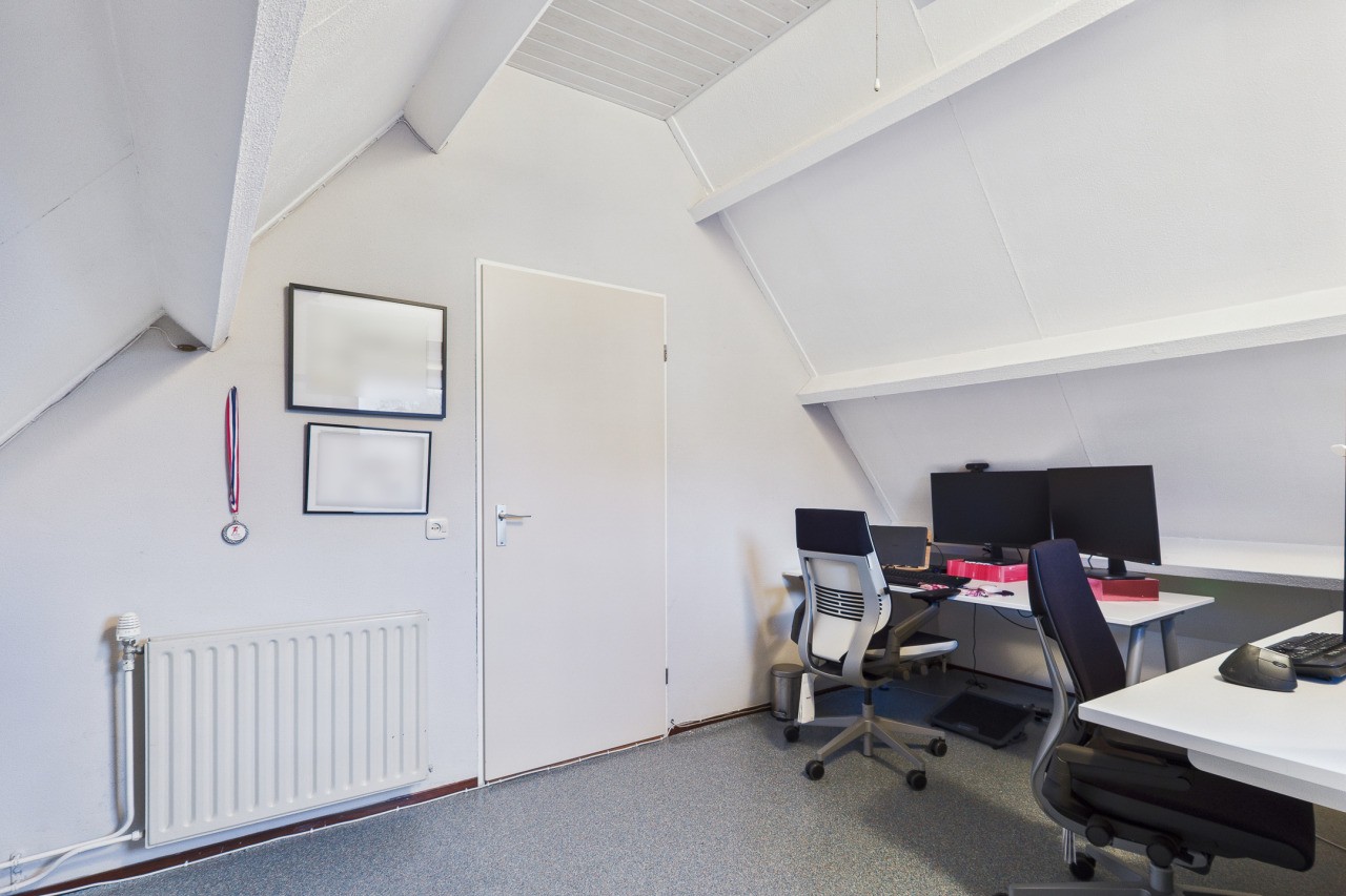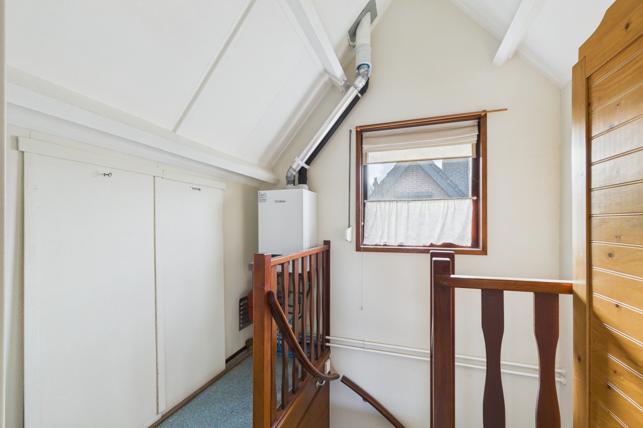 Overloop met berging en toegang tot de ruime 4e slaapkamer. Deze verdieping is ideaal als extra slaapkamer, werkkamer of hobbyruimte en biedt volop mogelijkheden om naar eigen wens in te richten.