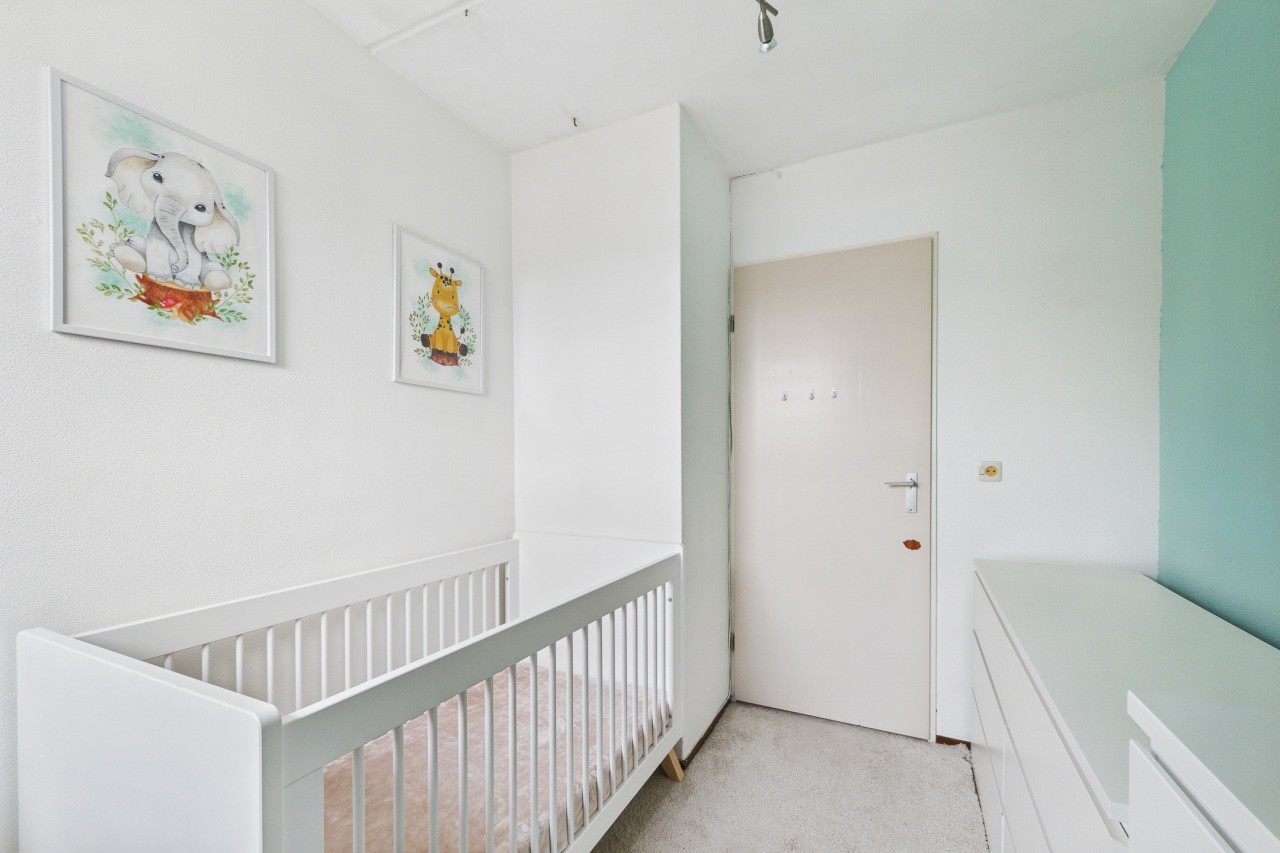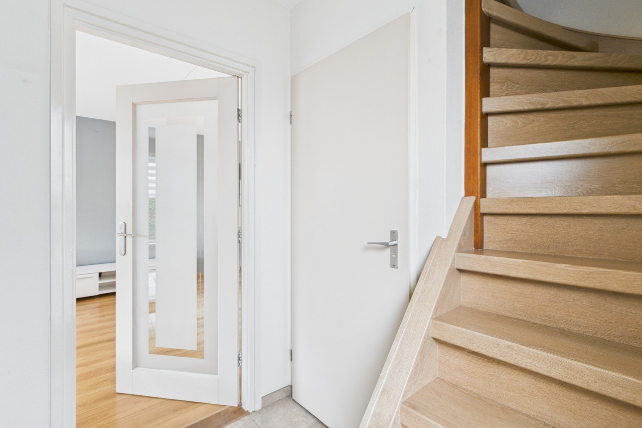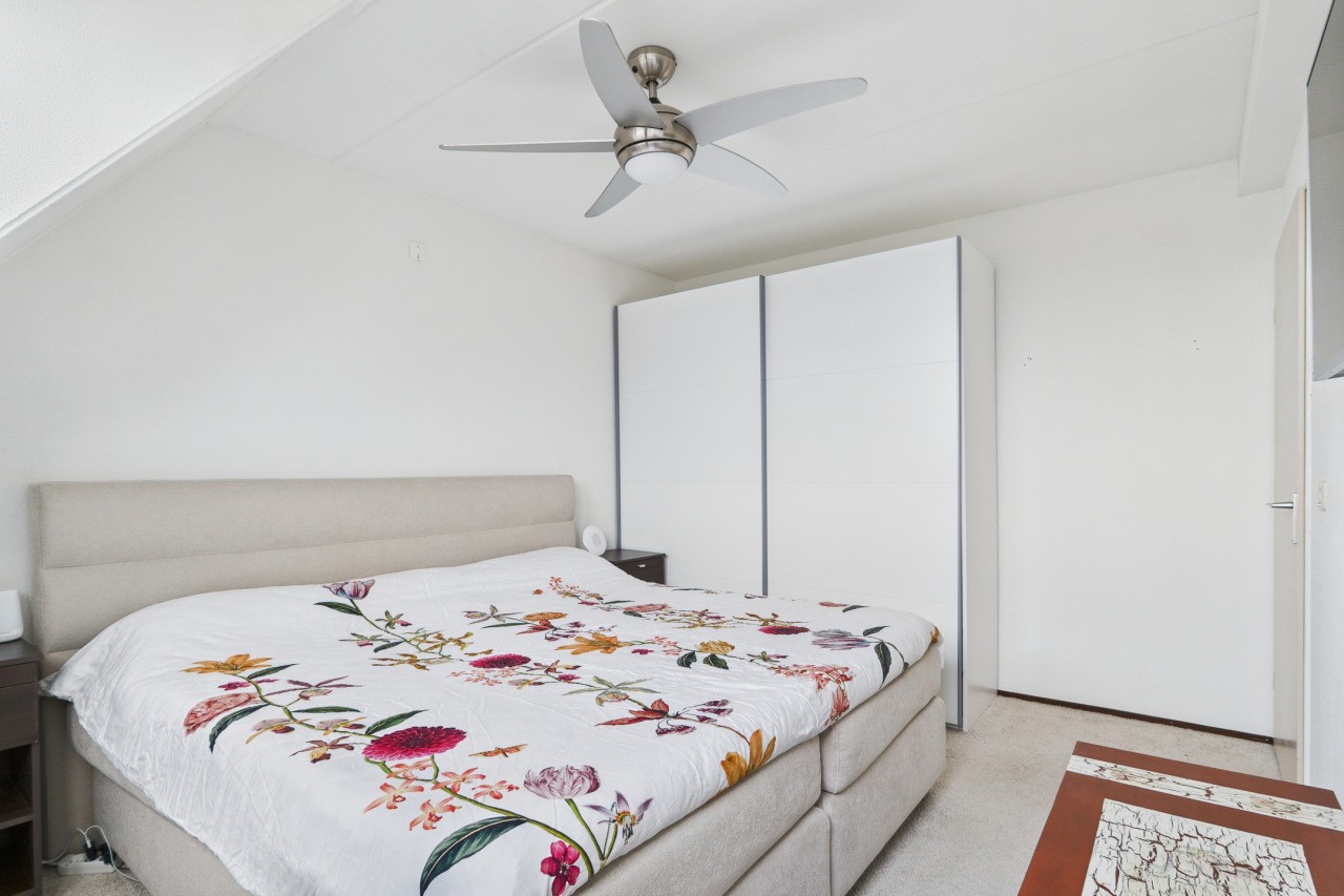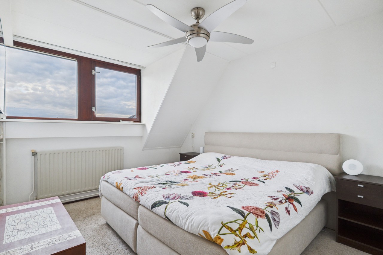 Overloop met berging en toegang tot de ruime 4e slaapkamer. Deze verdieping is ideaal als extra slaapkamer, werkkamer of hobbyruimte en biedt volop mogelijkheden om naar eigen wens in te richten.