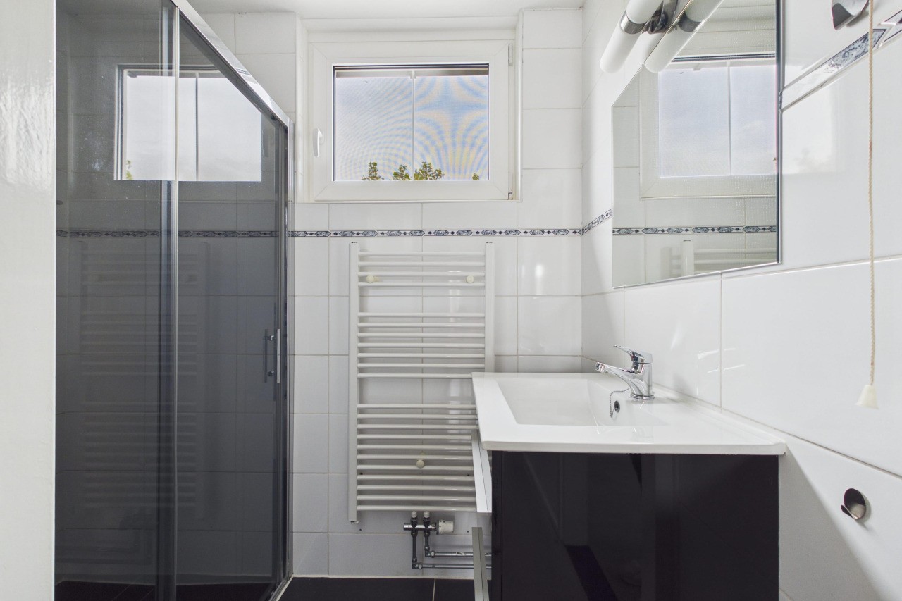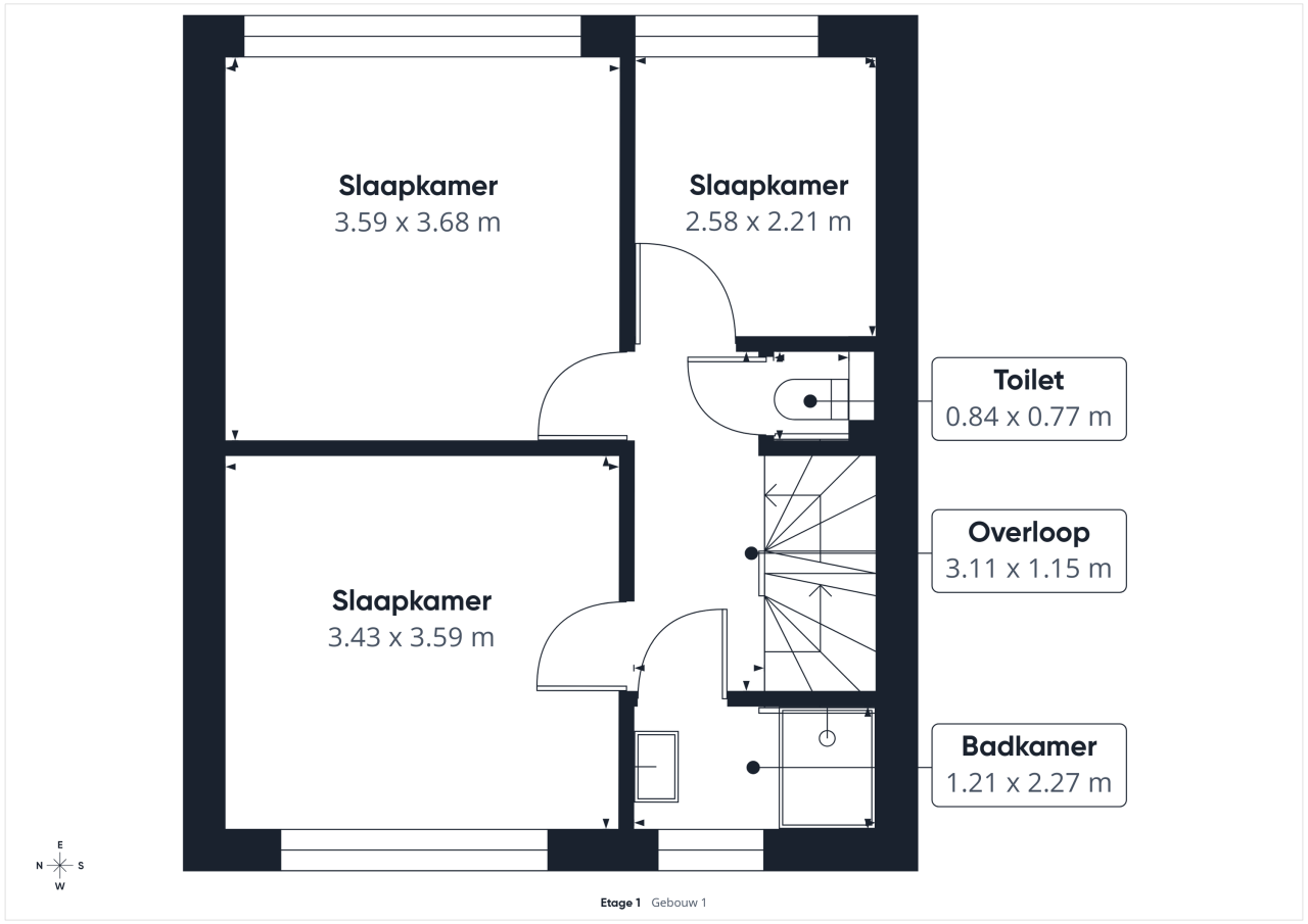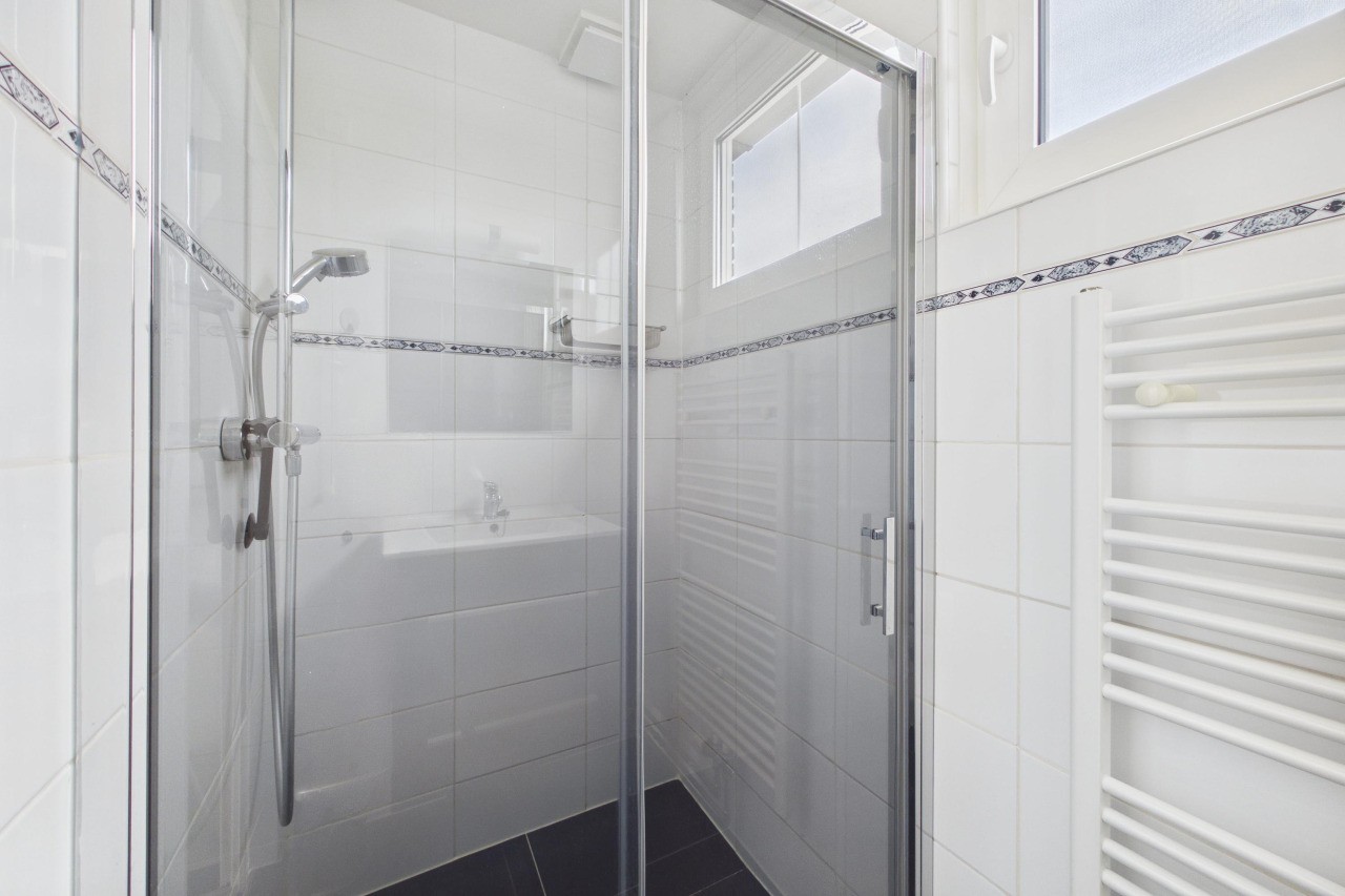 Op de eerste verdieping kom je op de overloop, die toegang geeft tot drie slaapkamers en de badkamer. Alle kamers zijn netjes afgewerkt en bieden voldoende ruimte voor verschillende indelingen. De badkamer is compact maar sfeervol, met een wastafelmeubel en een douche. Daarnaast is er op deze verdieping een tweede toilet aanwezig.