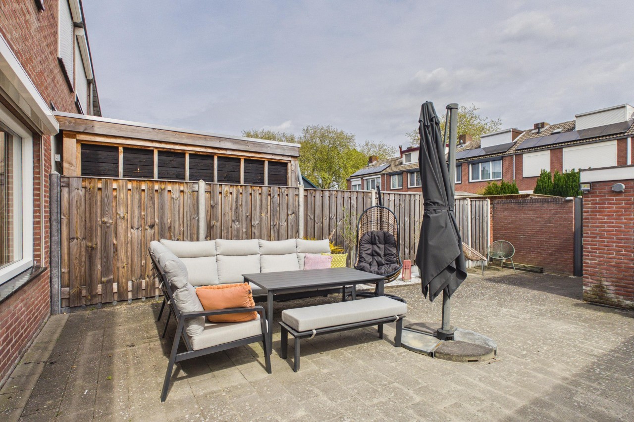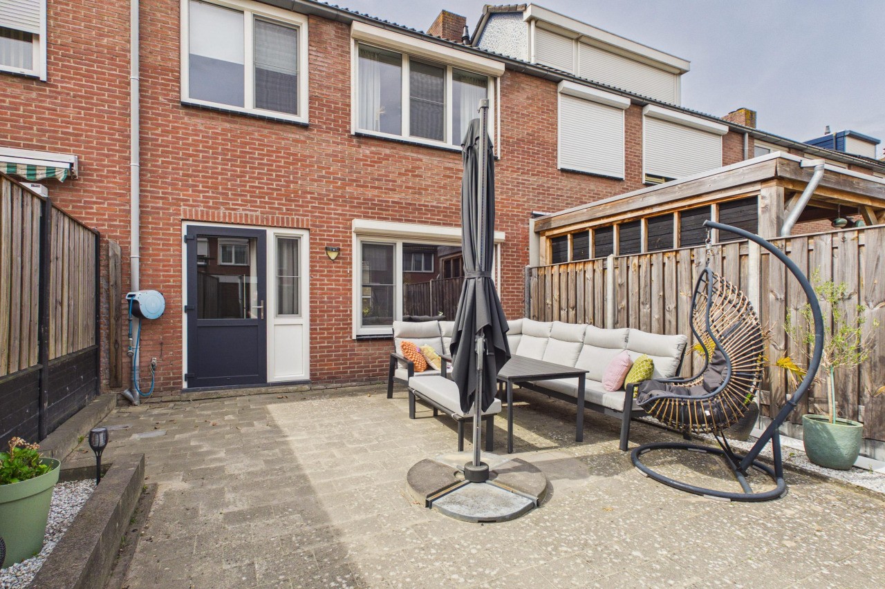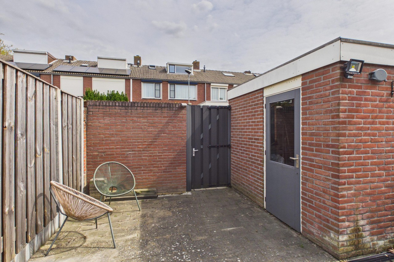 De achtertuin is onderhoudsarm en gezellig ingericht, waardoor je hier zonder veel werk kunt genieten van het buitenleven. Dankzij de ligging op het oosten pak je hier al vroeg op de dag de zon mee, perfect voor een ontspannen start van je ochtend. Achterin de tuin staat een stenen berging en via de vrije achterom is de tuin ook makkelijk bereikbaar.