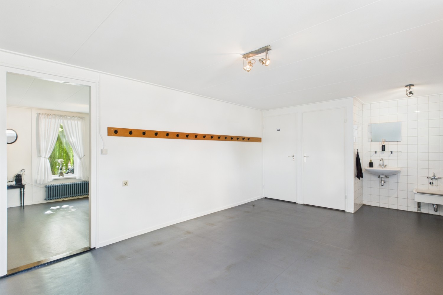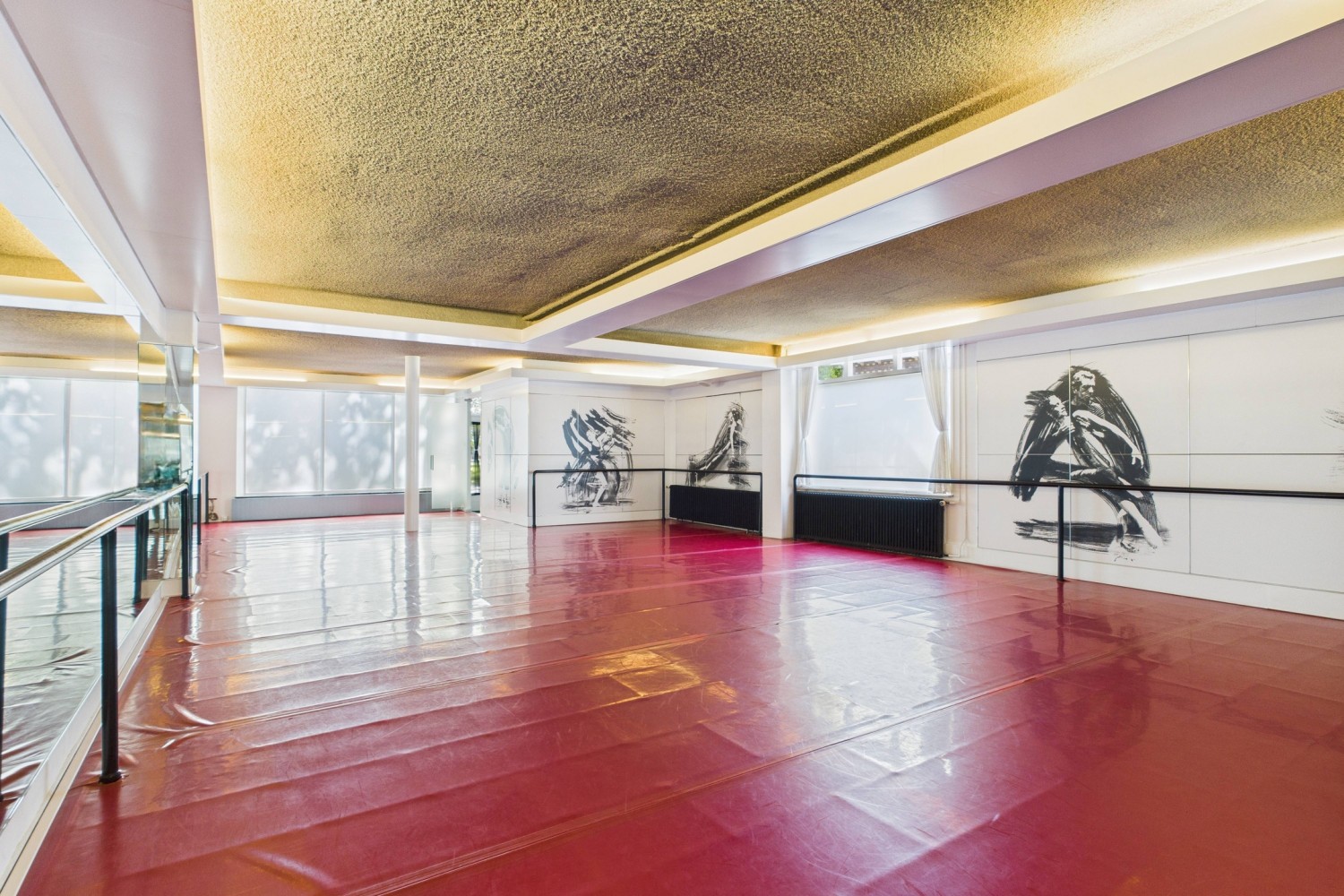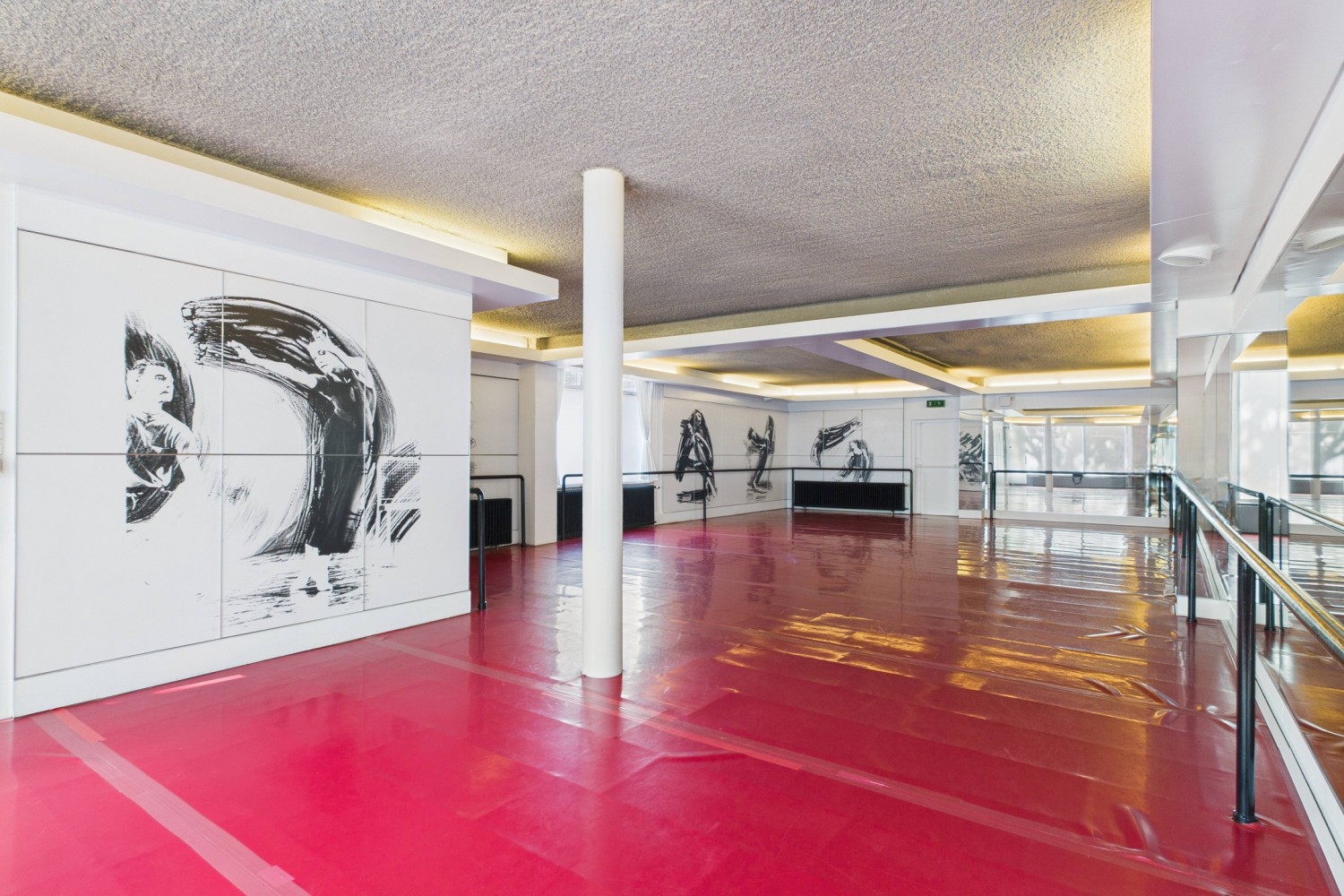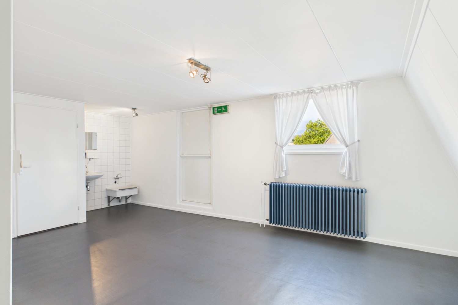 Bij binnenkomst stap je de hal in, waar ook de trapopgang en een handige trapkast te vinden zijn. Vanuit hier loop je door naar de royale dansstudio die tot voor kort het hart van deze locatie vormde. De ruimte is indrukwekkend groot en biedt tal van mogelijkheden voor herinrichting of alternatief gebruik. Aan de achterzijde is een nooduitgang die toegang geeft tot de brandgang en achtertuin.