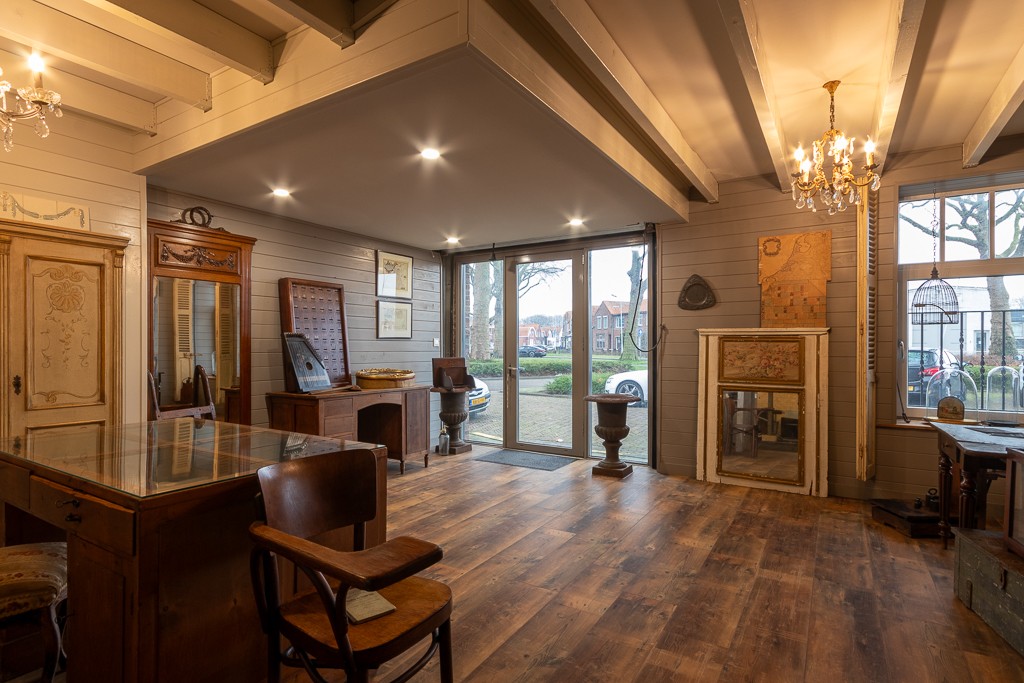 De begane grond leent zich bij uitstek als werk-/commerciële ruimte. Via de grote en lichte pui kom je het pand binnen in de showroom. Achter deze ruimte ligt een grote werkplaats/berging waar tevens een pantry is gecreëerd met een apart toilet. Deze ruimte is nog verder in te delen als kantoor of extra woonruimte. Via de berging heb je een vrije achterom, welke deels is overdekt; deze ruimte is ideaal voor het stallen van fietsen en de vuilcontainers. Als eigenaar kun je het pand ook betreden via de separate voordeur aan de voorzijde van de woning. Je komt de woning binnen in de hal met toilet en trapopgang naar de eerste verdieping. Vanuit de hal heb je toegang tot de wasruimte en een extra slaapkamer.