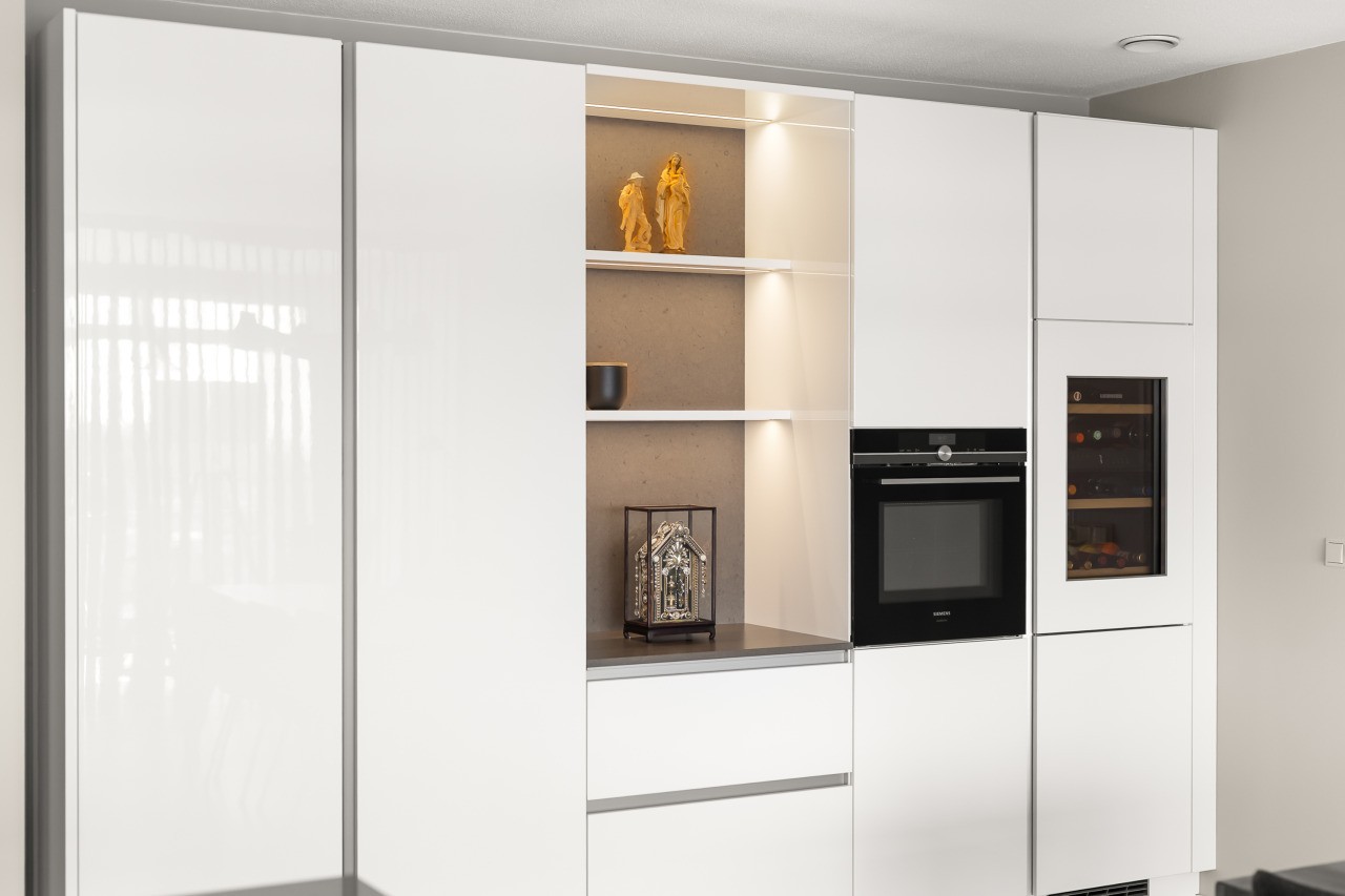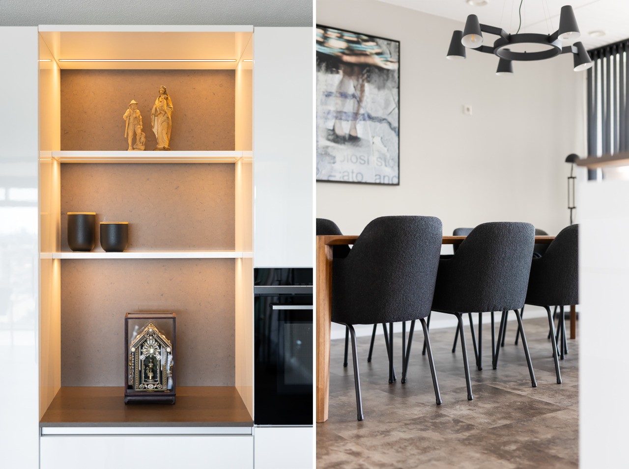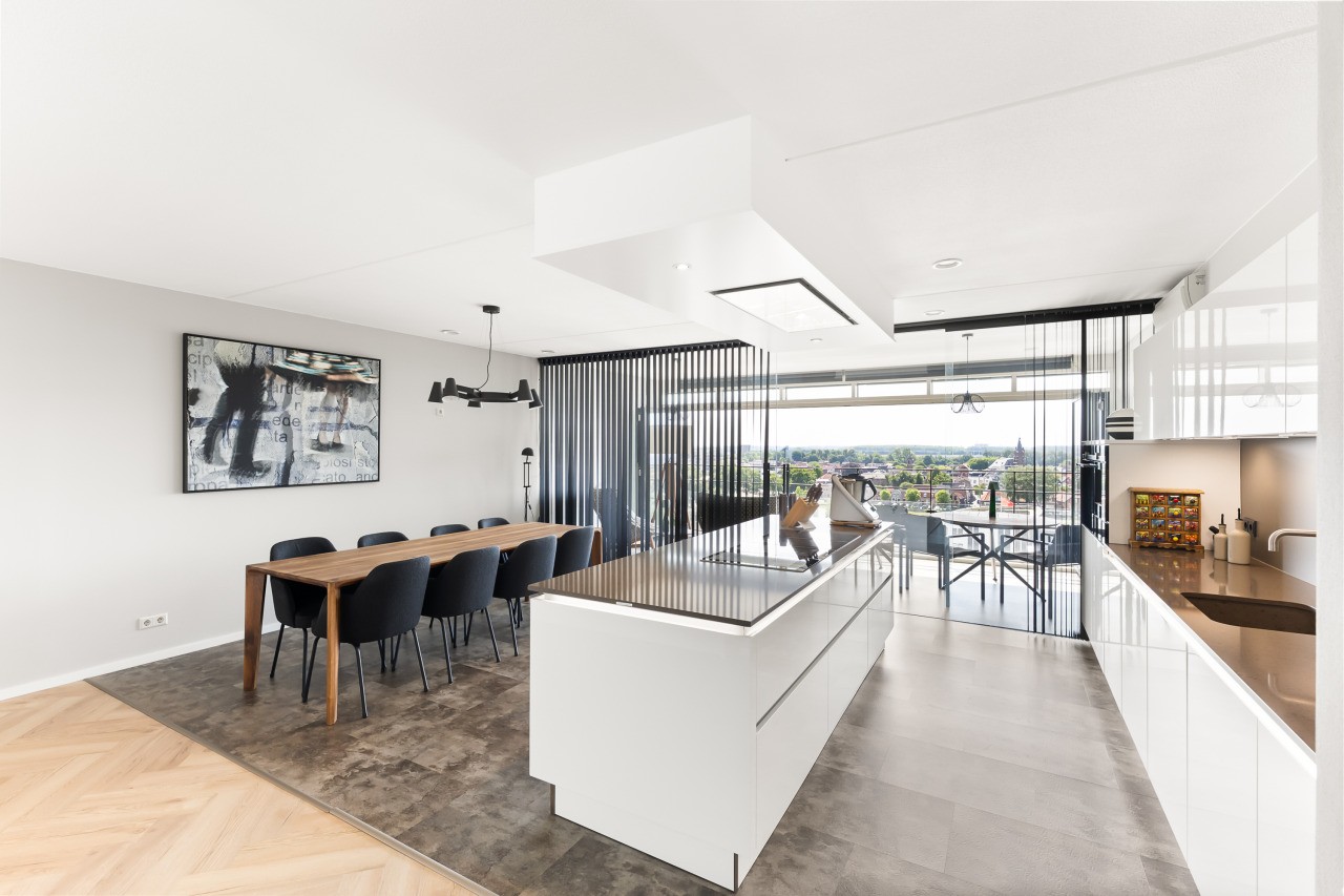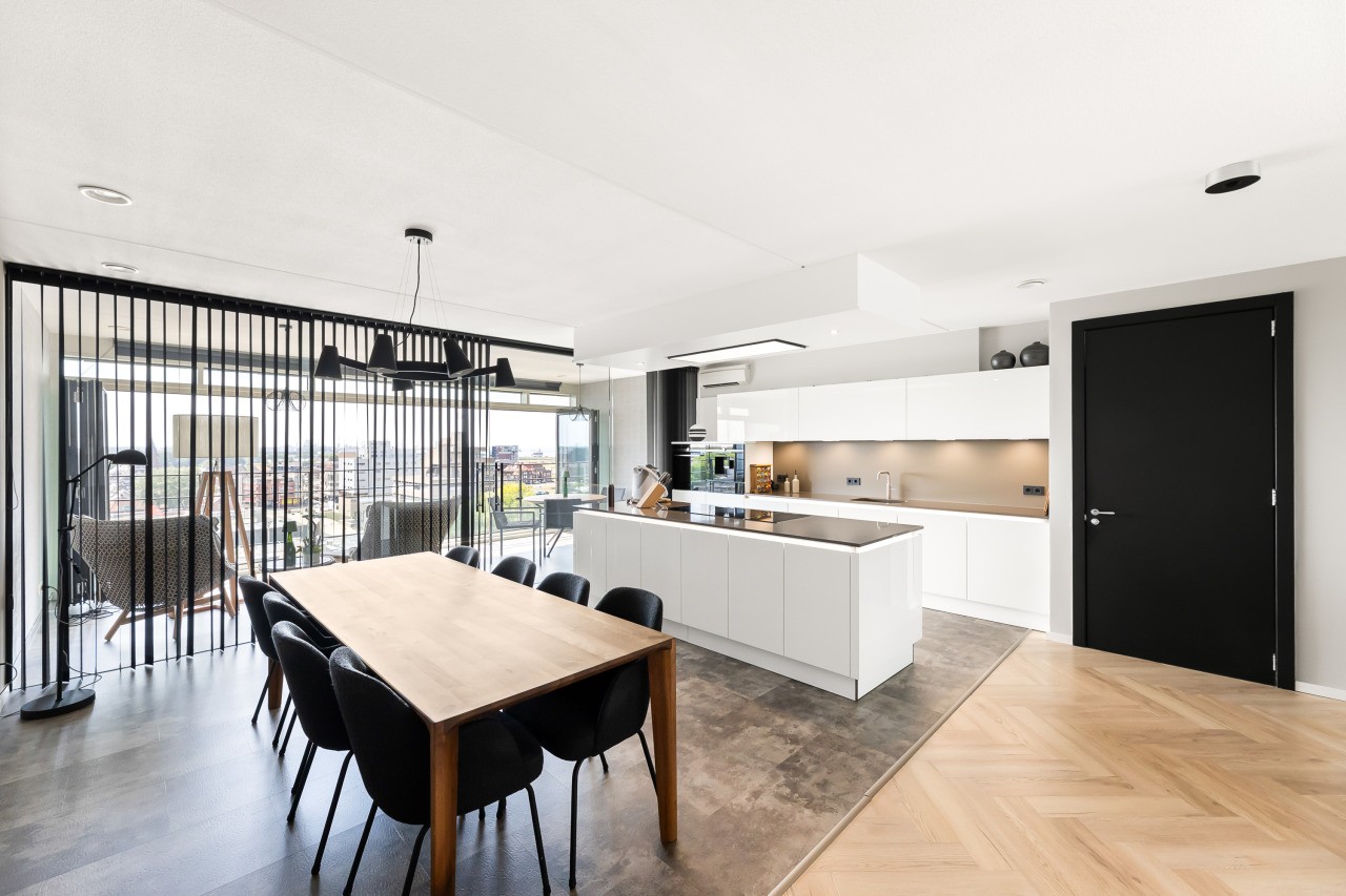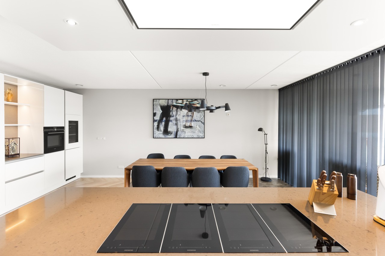 De woonkeuken is een waar pronkstuk: Nolte design met onder meer een 8-pits inductiekookplaat op het kookeiland, een stijlvolle afzuigkap, combimagnetron, combistoomoven, koelkast, vaatwasser, vriezer, wijnklimaatkast, ingebouwd koffieapparaat, Quooker, LED-verlichting in de lades en elektrisch bedienbare bovenkastjes. Aansluitend is er een binnenbalkon met glazen schuifwand en volledig te openen ramen – een heerlijke plek voor alle seizoenen.