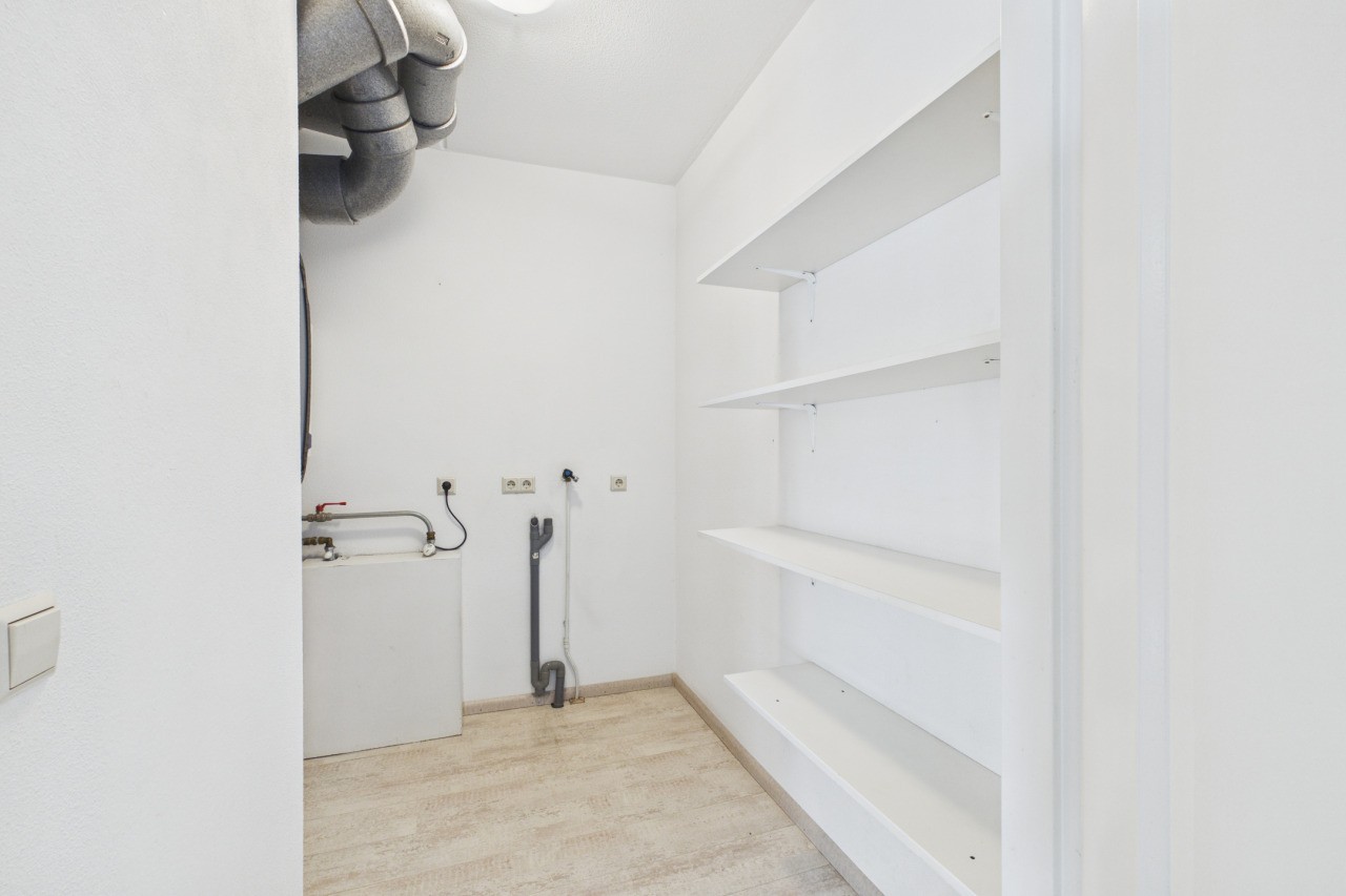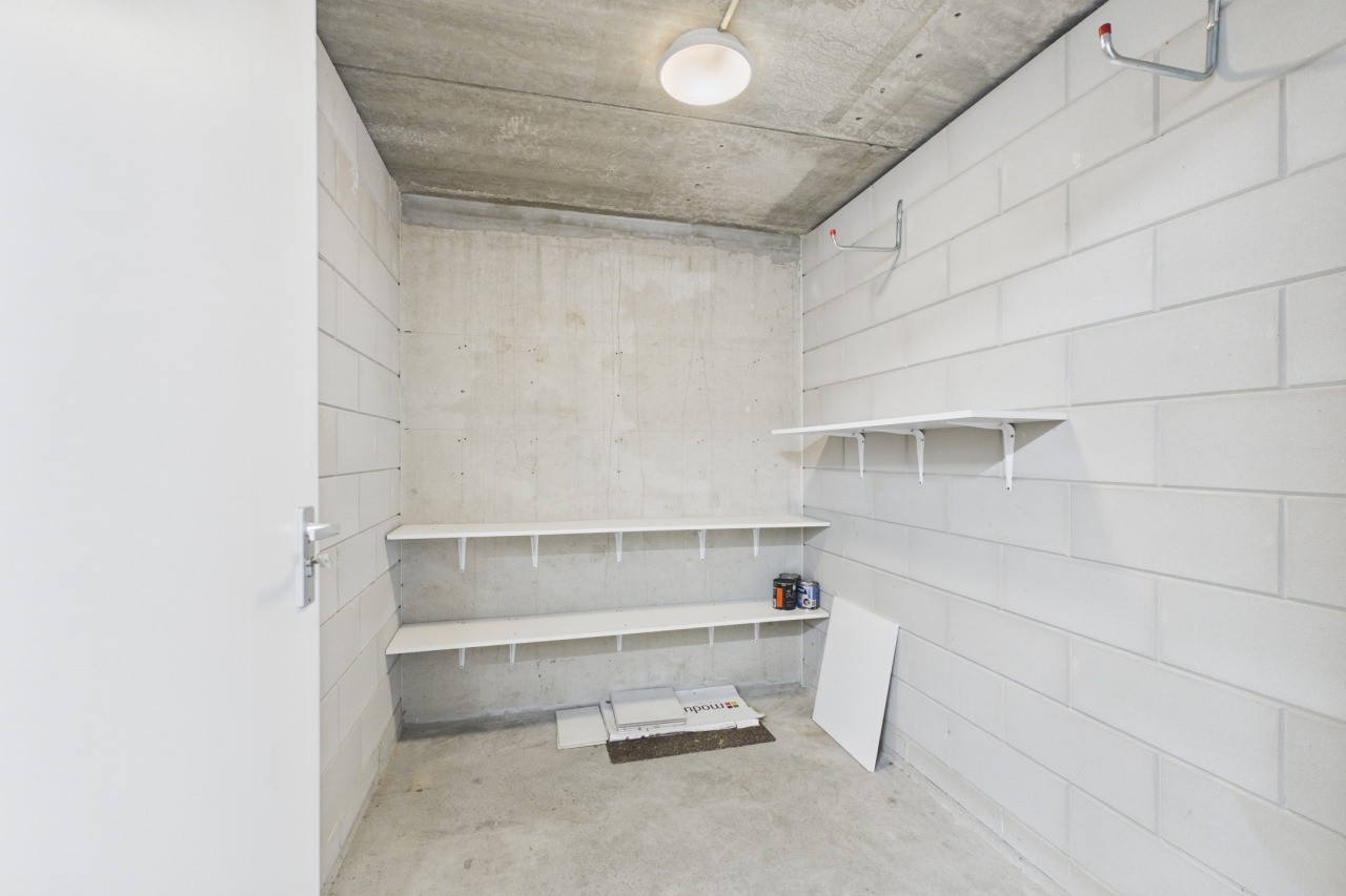 In de afgesloten parkeerkelder bevinden zich een privéparkeerplaats en een praktische berging (ca. 2,5 x 1,95 m).