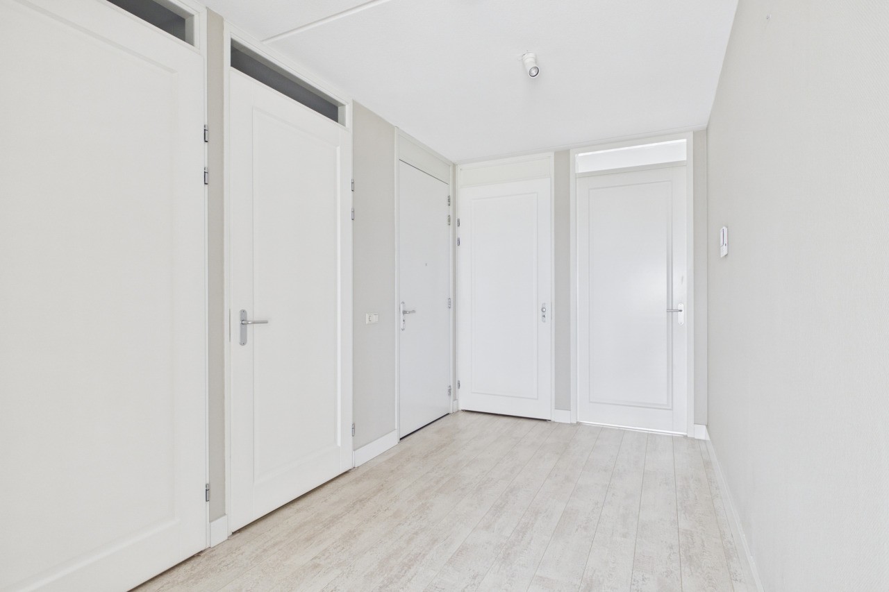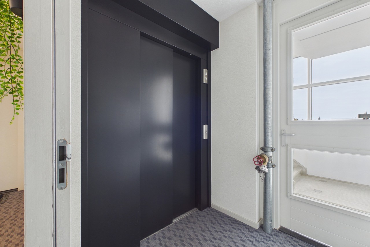 Representatieve centrale entree met liften, trapopgang en toegang tot de parkeerkelder en bergingen. Via de meest rechtse lift bereik je de 2e verdieping. Hier bevinden zich slechts twee appartementen, wat zorgt voor extra privacy en een rustige woonomgeving.