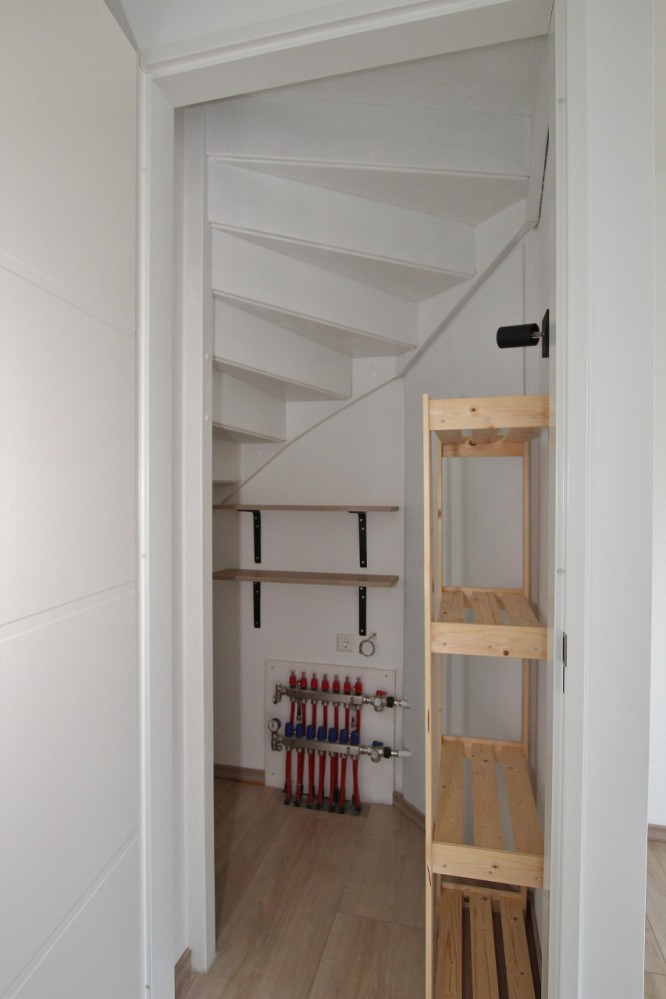 Daarnaast is er een technische ruimte aanwezig met warmtepomp, watervat, bediening voor de zonnepanelen