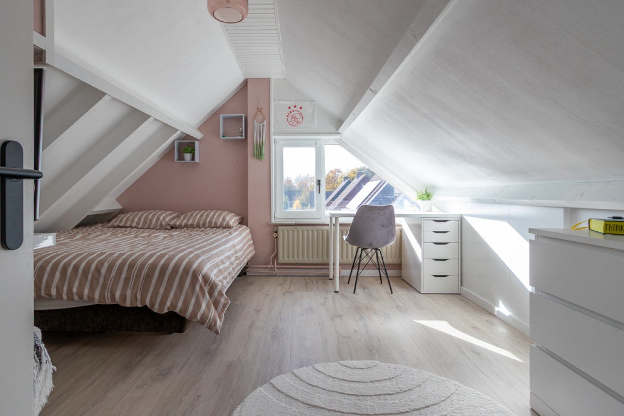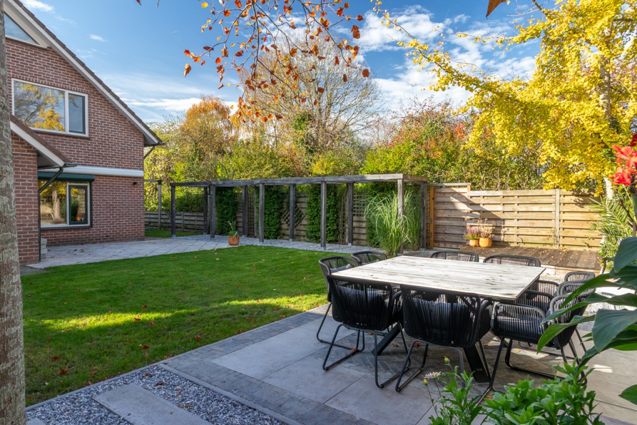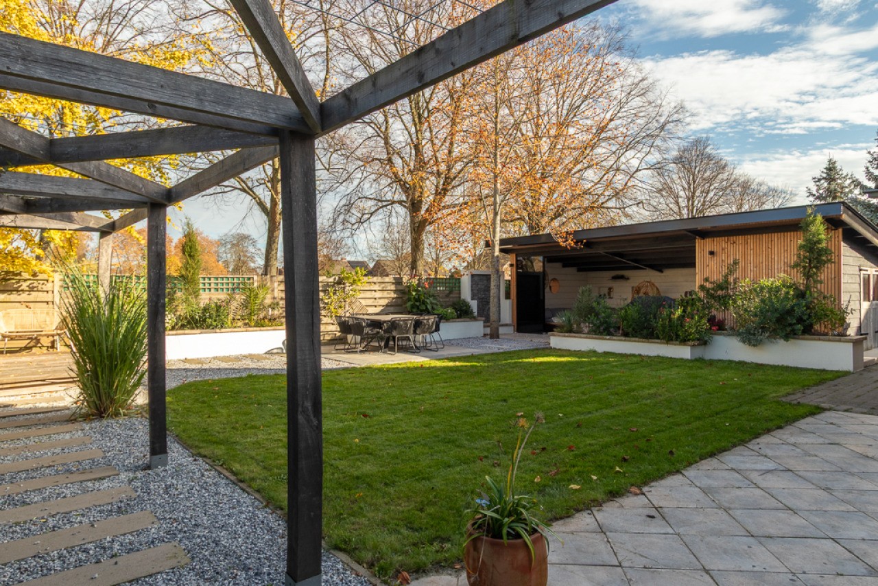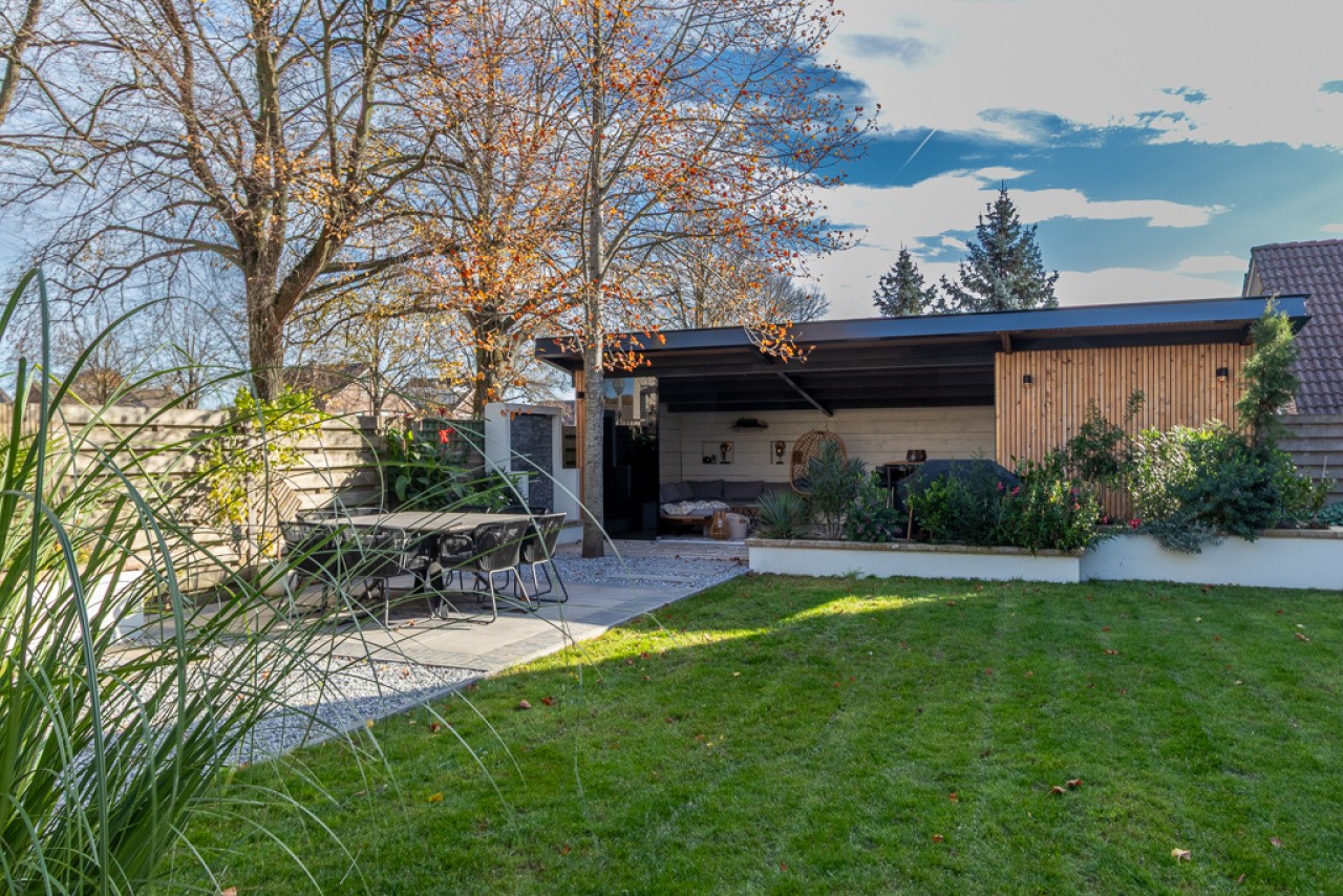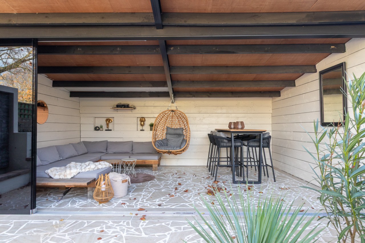 De achtertuin voelt als een verlenging van het huis. Met een terras, groen én een stijlvolle overkapping is er volop plek om te ontspannen, te tuinieren of kinderen te laten spelen. Onder de overkapping zit je heerlijk, ongeacht het weer, waardoor het een perfecte plek is voor lange zomeravonden, een kop koffie in de ochtend of een gezellig samenzijn met vrienden en familie. Dankzij de ligging heb je veel privacy en zowel zon als schaduw.