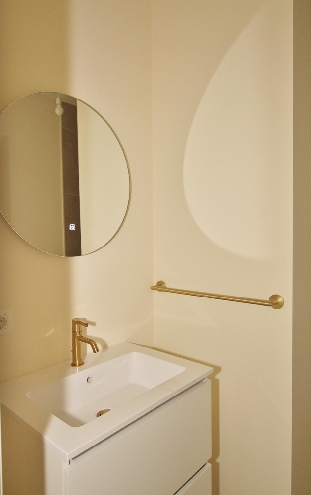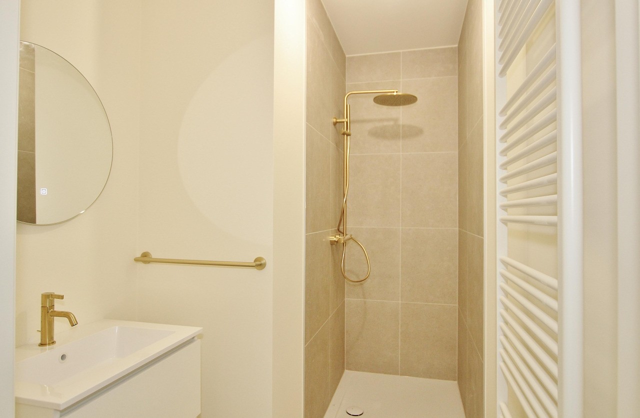 De tweede badkamer grenst aan de andere slaapkamer en is voorzien van een douche en wastafel, wat zorgt voor extra comfort en privacy.