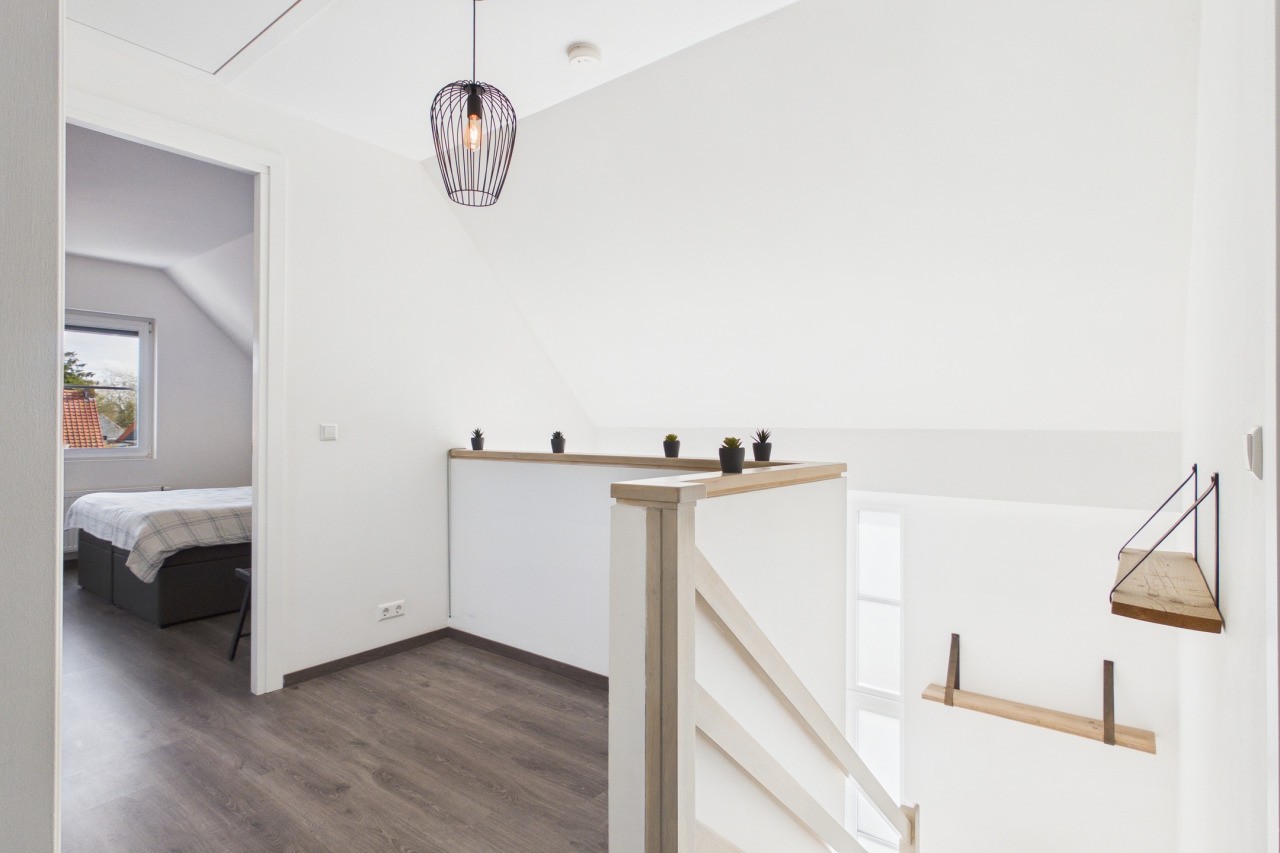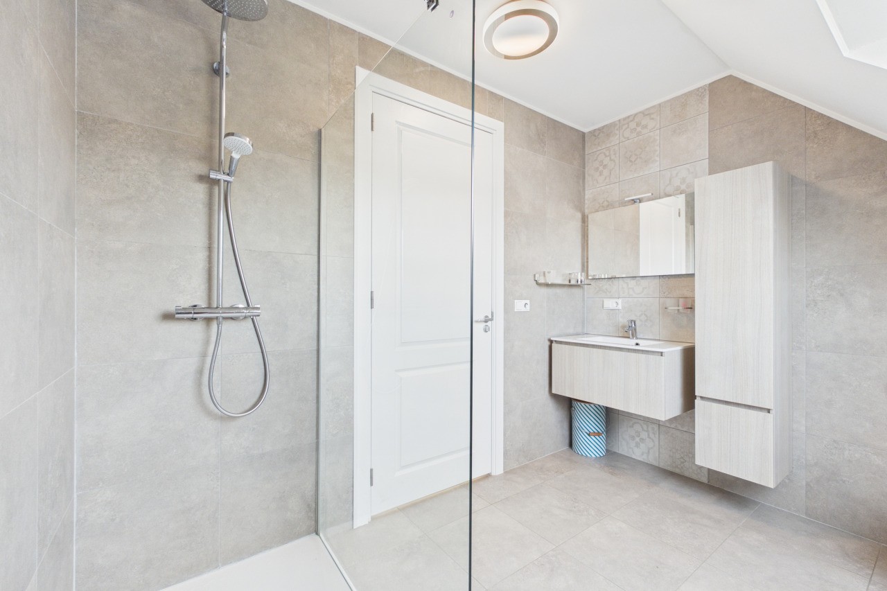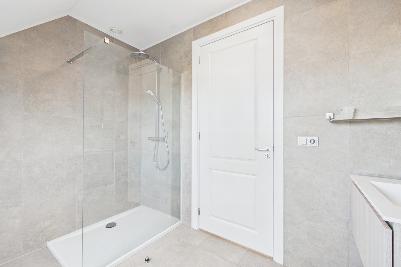 De eerste verdieping biedt volop ruimte voor het hele gezin. Vanaf de overloop heb je toegang tot drie slaapkamers, die stuk voor stuk netjes zijn afgewerkt. De master bedroom is voorzien van airconditioning, wat zorgt voor extra comfort tijdens warme dagen. De badkamer is modern uitgevoerd en beschikt over een inloopdouche, een wastafelmeubel en een vrijhangend toilet.