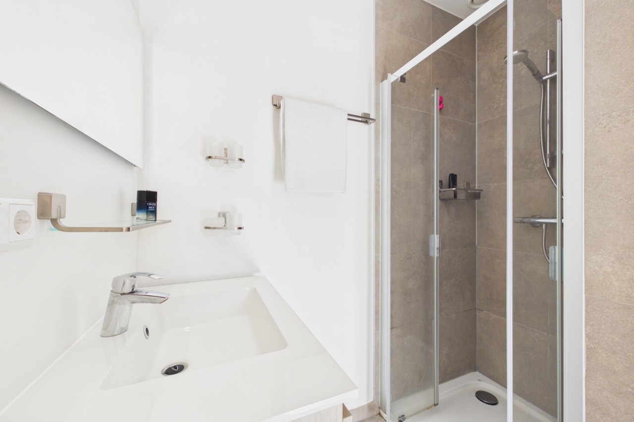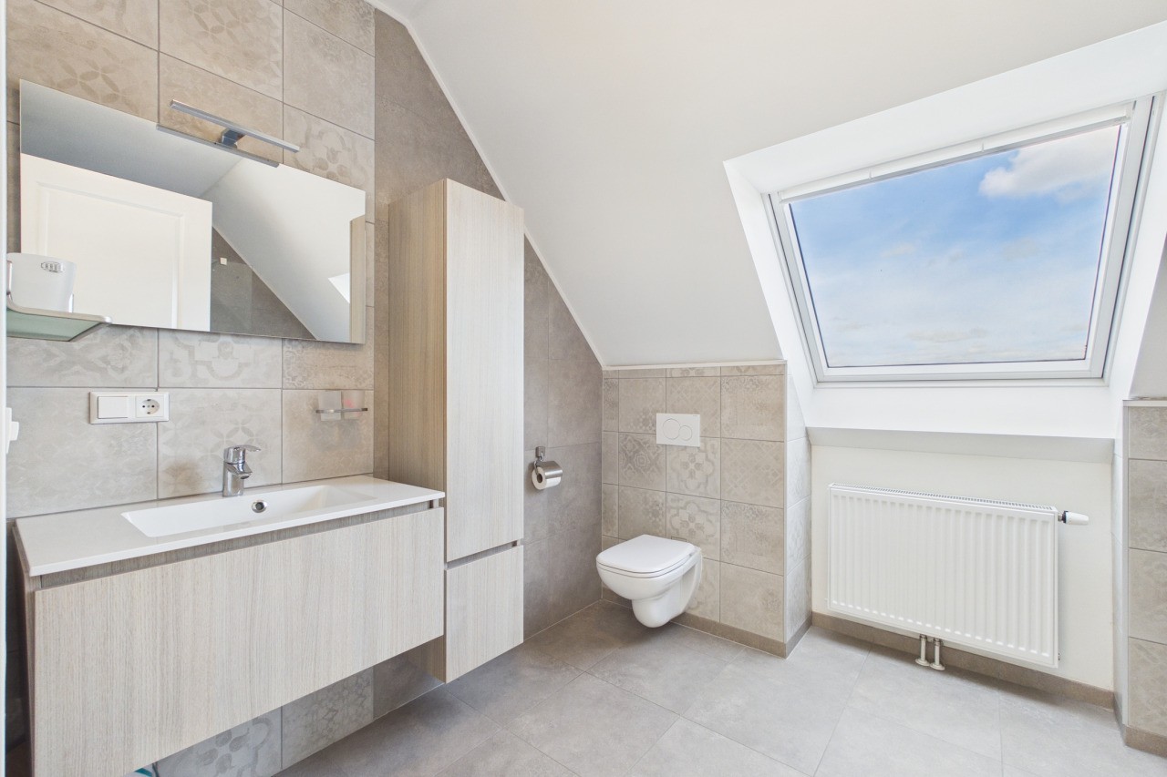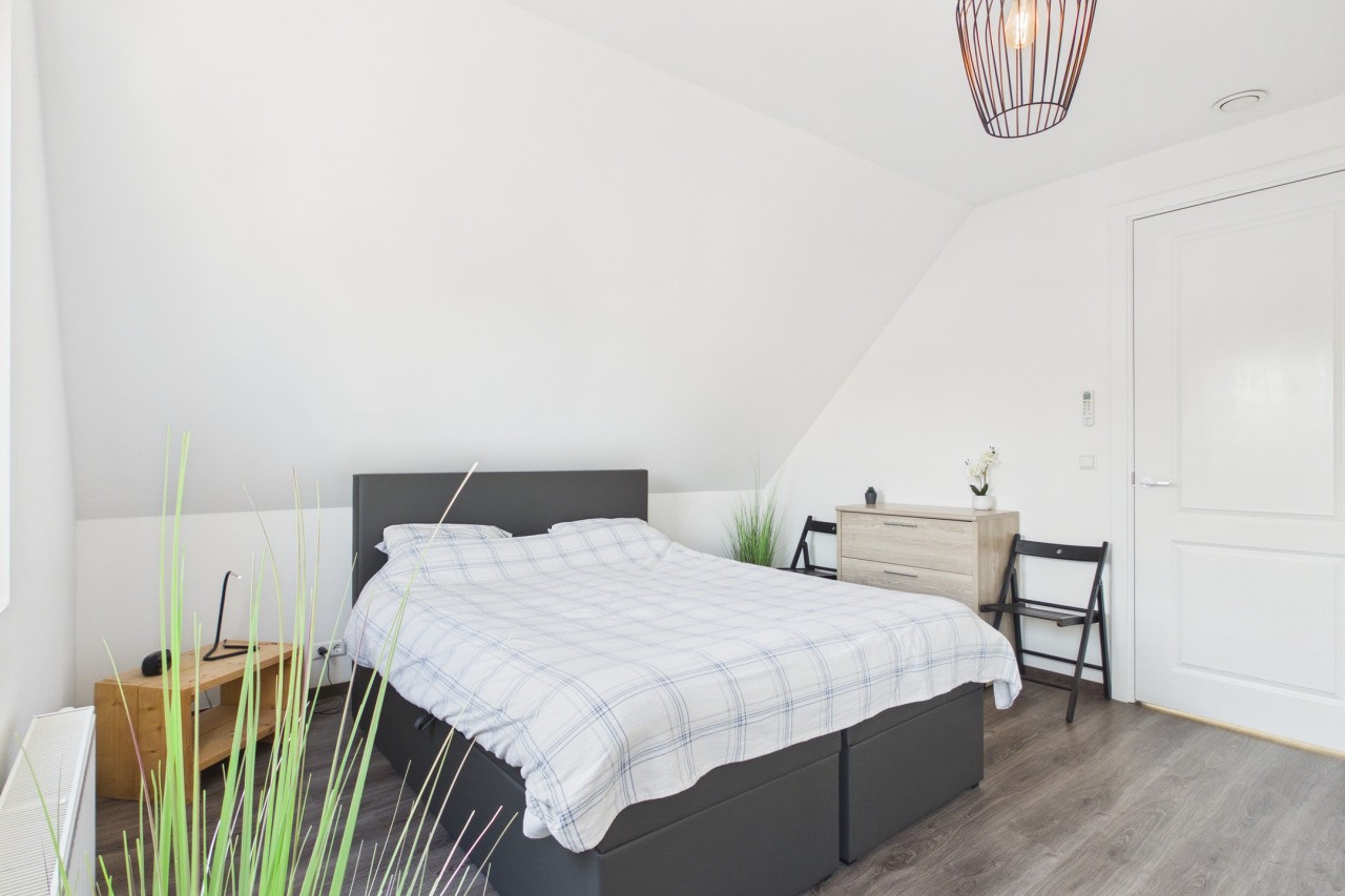 De eerste verdieping biedt volop ruimte voor het hele gezin. Vanaf de overloop heb je toegang tot drie slaapkamers, die stuk voor stuk netjes zijn afgewerkt. De master bedroom is voorzien van airconditioning, wat zorgt voor extra comfort tijdens warme dagen. De badkamer is modern uitgevoerd en beschikt over een inloopdouche, een wastafelmeubel en een vrijhangend toilet.