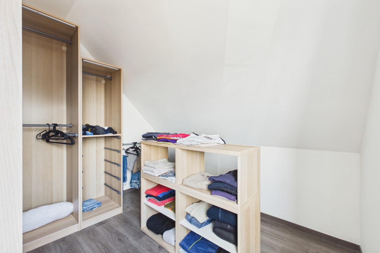 Via een vlizotrap bereik je de tweede verdieping, die in gebruik is als bergzolder. Een praktische ruimte voor het opbergen van spullen die je niet dagelijks nodig hebt, waardoor de rest van de woning overzichtelijk blijft.