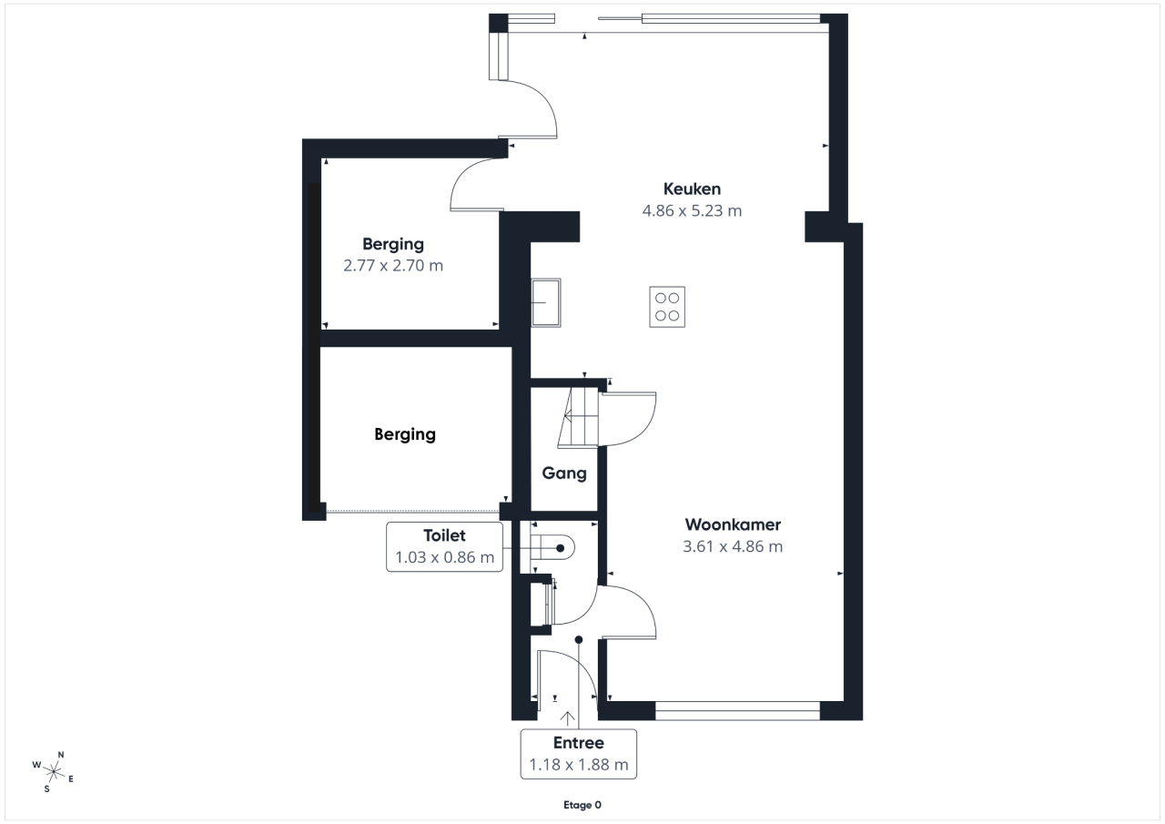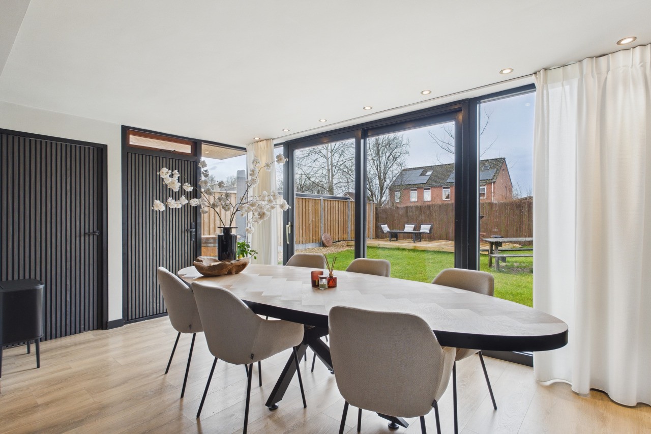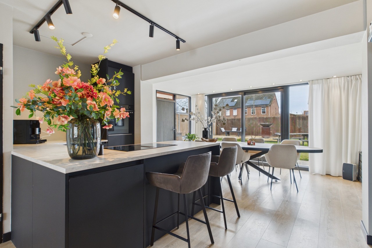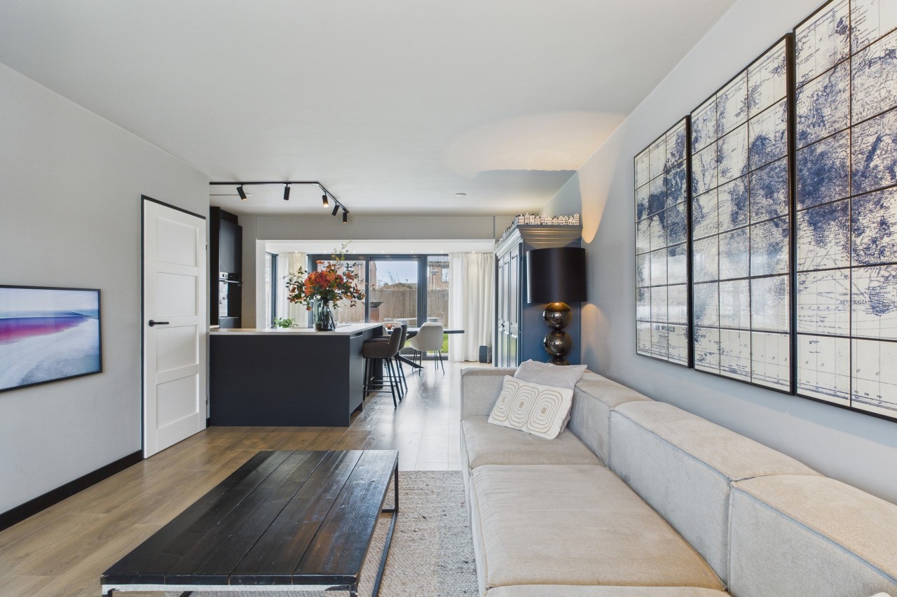 Via de hal met toilet en meterkast kom je in de woonkamer, waar direct de lichte en open sfeer opvalt. Aan de voorzijde is ruimte voor een comfortabele zithoek, terwijl in het midden van de woning de moderne keuken is gesitueerd, voorzien van diverse inbouwapparatuur. Aan de achterzijde bevindt zich een ruime eethoek met een glazen pui en schuifdeur, die zorgen voor veel daglicht en een mooie verbinding met de tuin. Vanuit de woonkamer is tevens de trap naar de eerste verdieping bereikbaar en is er toegang tot de inpandig bereikbare berging en de achtertuin.