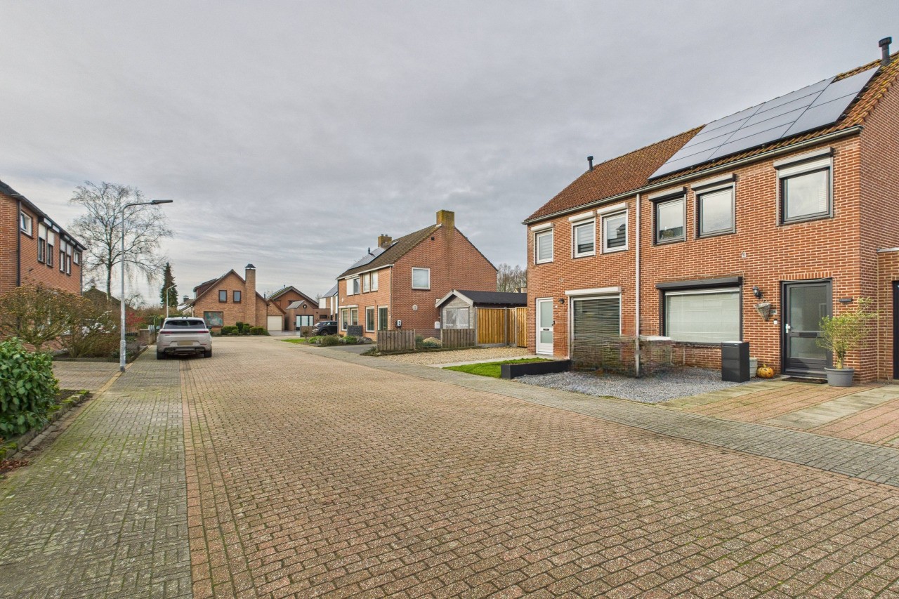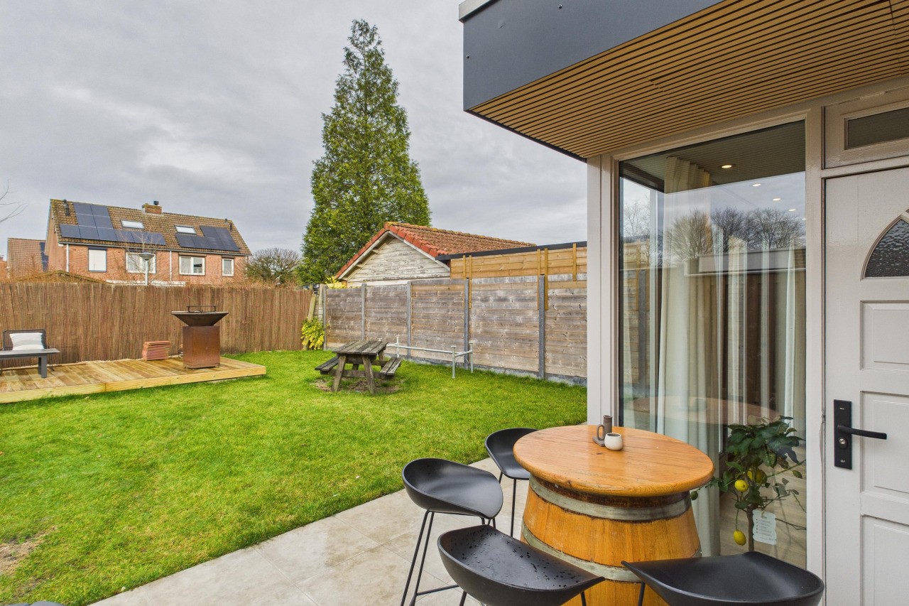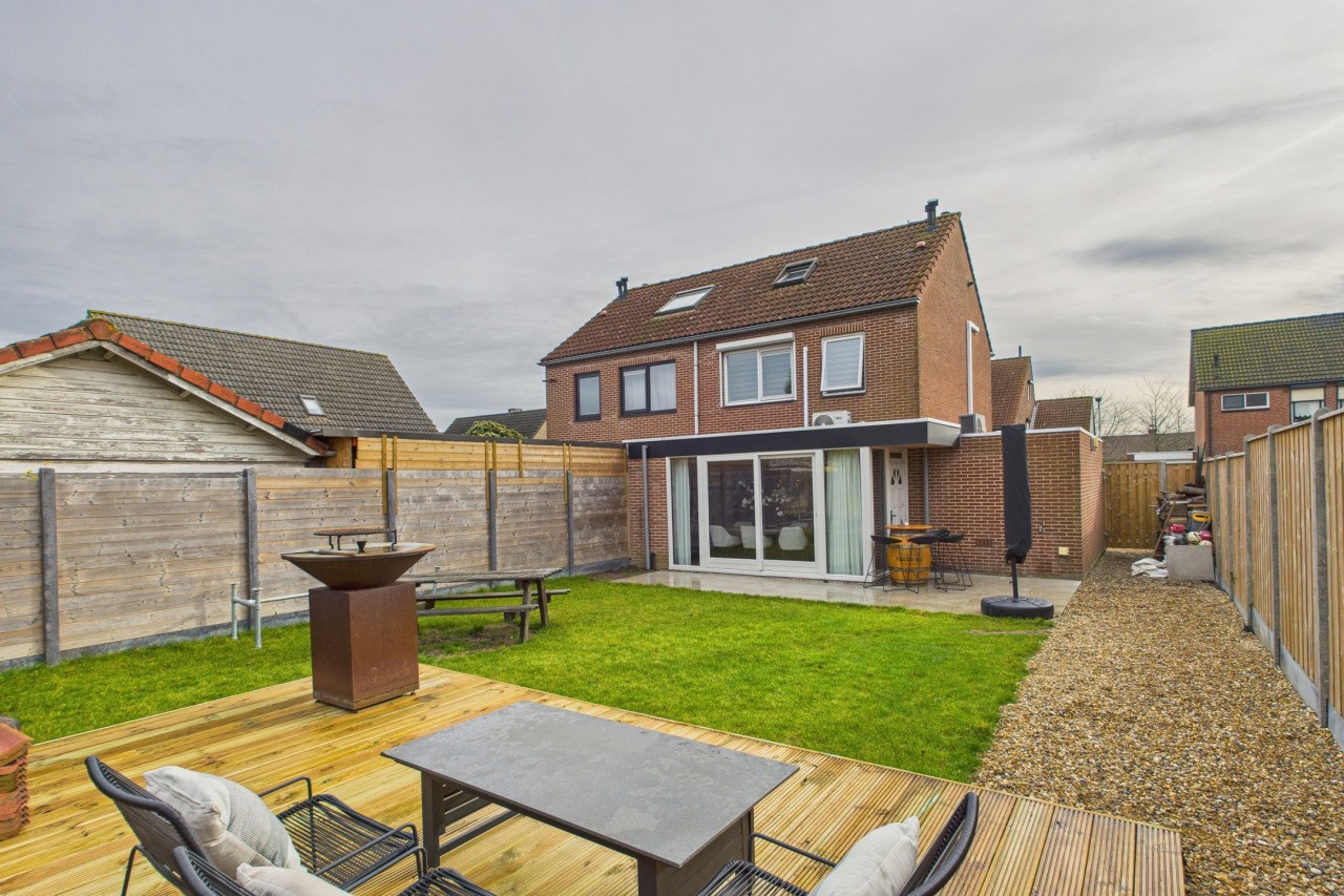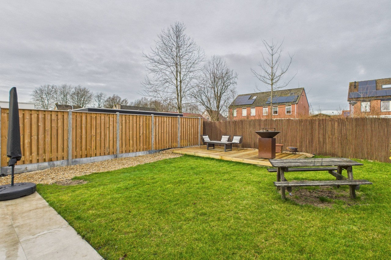 De achtertuin is fraai aangelegd en gelegen op het noordwesten. Hier wisselen nette terrassen en een verzorgd gazon elkaar af, waardoor er op verschillende momenten van de dag een fijne plek te vinden is om buiten te zitten. De vrije achterom maakt de tuin extra praktisch. Aan de voorzijde van de woning is een ruime oprit aanwezig, wat het parkeren gemakkelijk maakt.