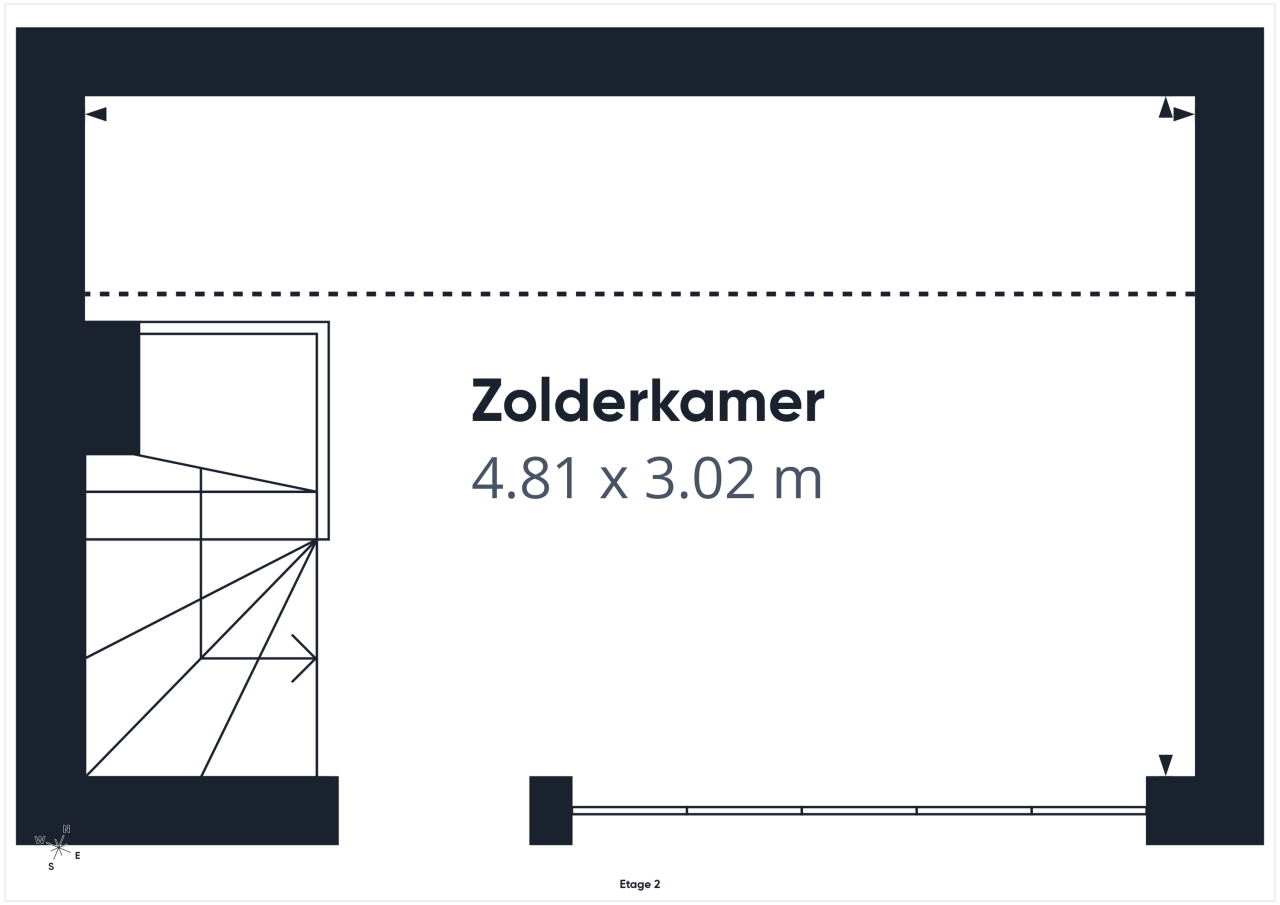 De tweede verdieping is bereikbaar via een vaste trap en biedt een ruime zolderkamer met een vaste wand en witgoedaansluitingen. Deze verdieping is flexibel in te richten, bijvoorbeeld als extra slaapkamer, werkruimte of hobbykamer.